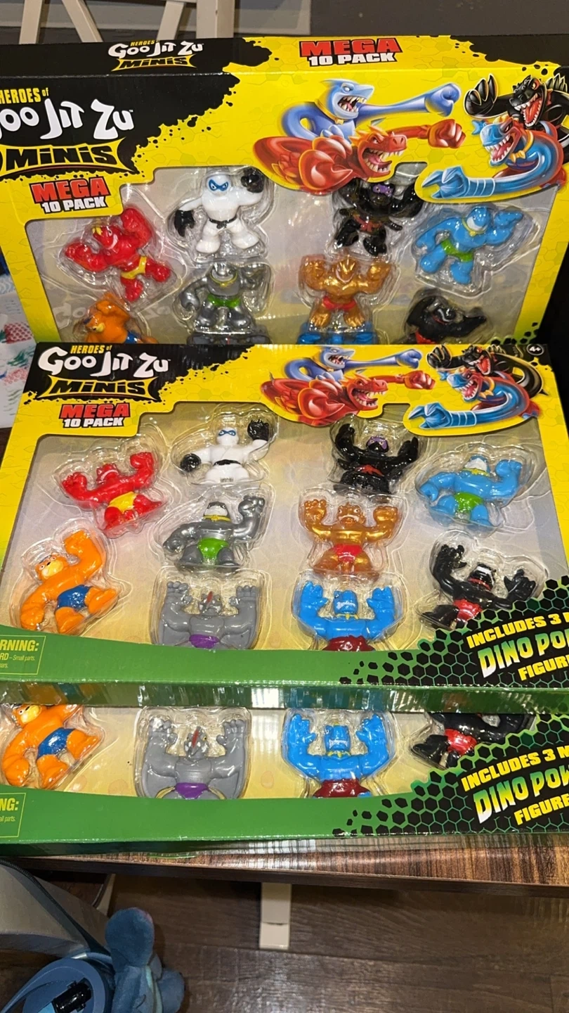 This is a Mega 10 Pack of Heroes of Goo Jit Zu Minis action figures. It includes 3 Dino Power figures. These stretchy, squishy heroes are ready for action!
