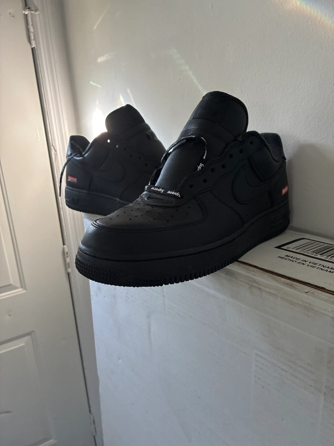 10.5 supreme all black Air Force 1’s