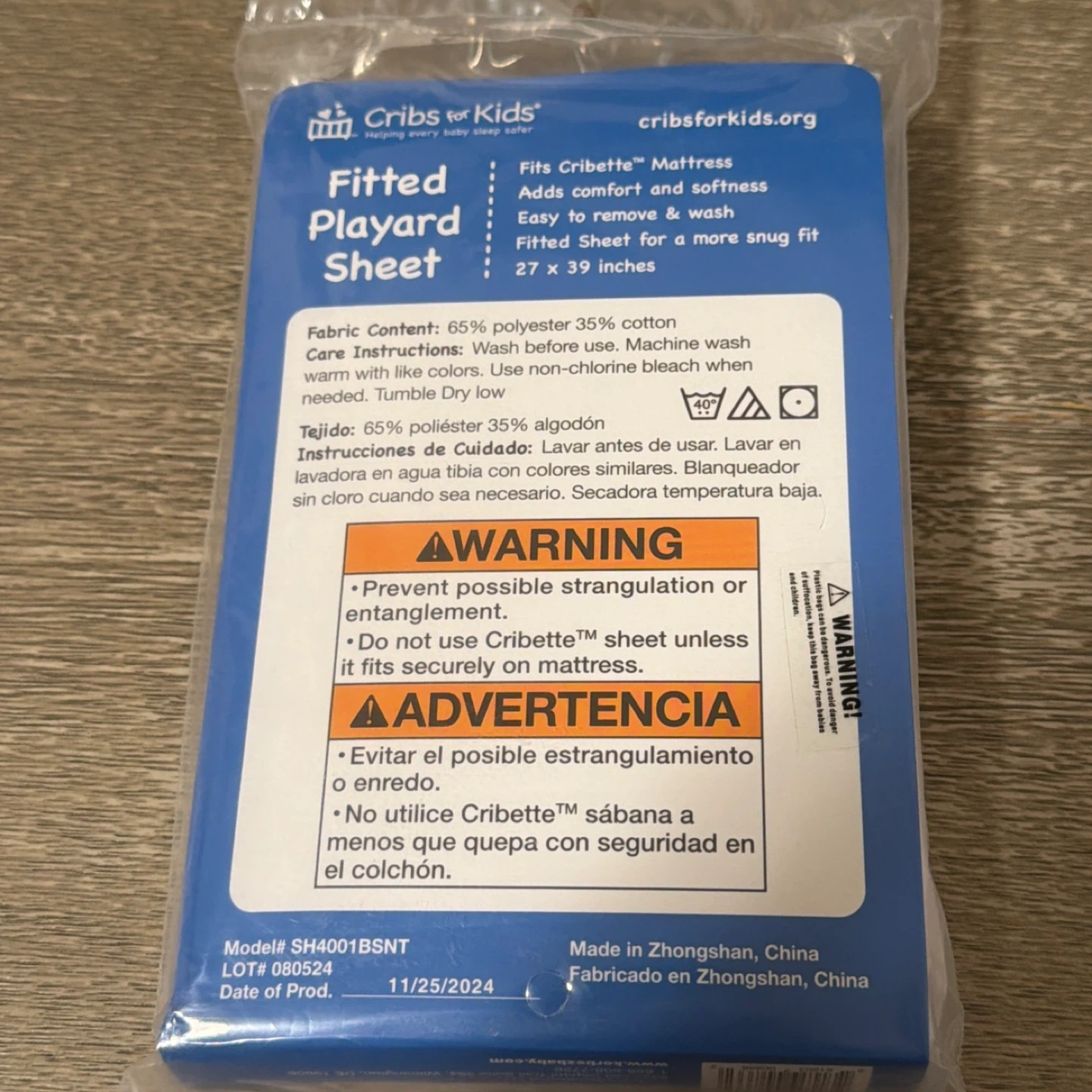 Fits standard 27 x 39 inch playard mattresses. Fabric is 65% polyester and 35% cotton. Machine washable and dryable on low heat. Adds comfort and softness to your playard mattress.