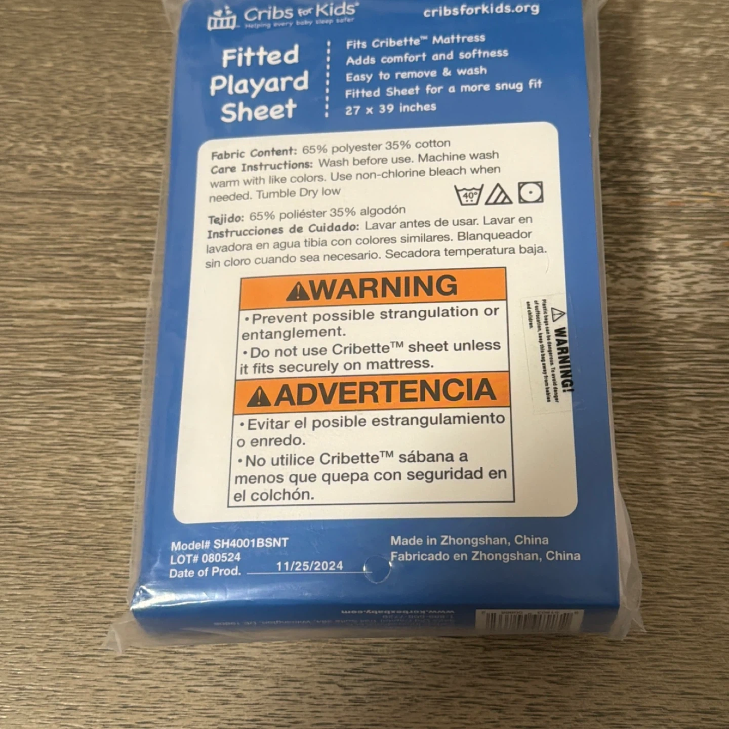 Fits standard 27 x 39 inch playard mattresses. Fabric is 65% polyester and 35% cotton. Machine washable and dryable on low heat. Adds comfort and softness to your playard mattress.