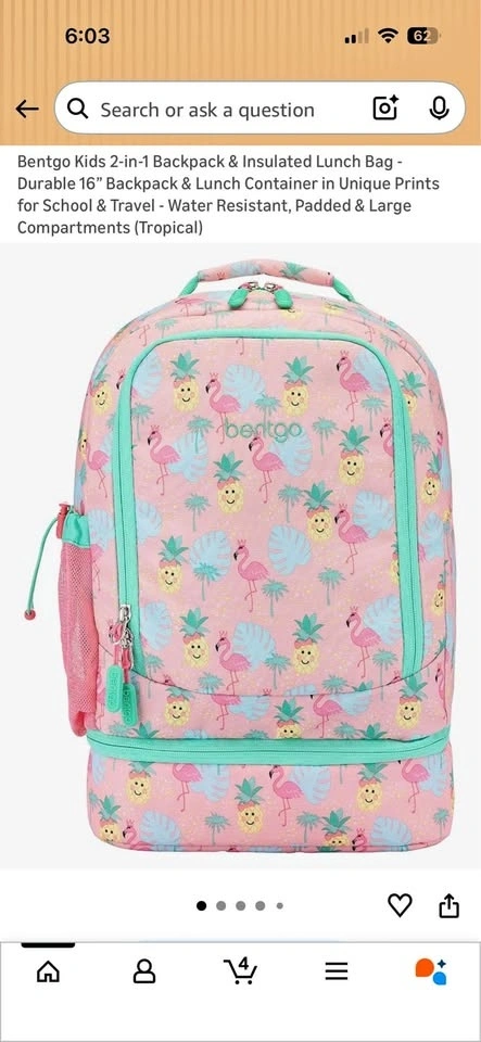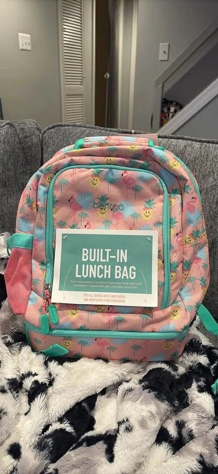 This 2-in-1 bag combines the space and durability of a school or daycare backpack with the convenience of an insulated lunch bag! Made with premium, non-toxic fabric, this bag is perfect for kids ages 5 and up. It has a spacious design, unique prints, and a water-resistant exterior that's easy to clean. There’s ample room for tablets, laptops, and notebooks, in addition to built-in pockets for pens and pencils. The bottom compartment zips open to reveal a double-insulated lunch bag section. The backpack is lightweight and easy to carry with padded back and shoulder straps, a durable top handle, and kid-friendly zipper pulls. As part of the Bentgo Kids collection, you can coordinate it with matching lunch bags, lunch boxes, and water bottles. Bentgo is a proud supporter of Feed the Children.