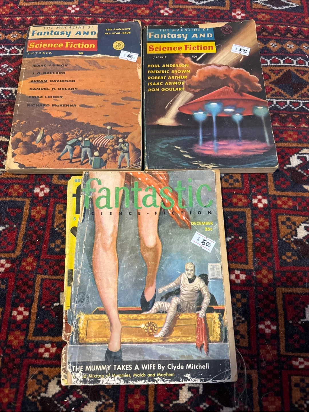 Selling a collection of vintage "The Magazine of Fantasy and Science Fiction" magazines. Includes the October, June, and December issues. Great for collectors of science fiction literature!