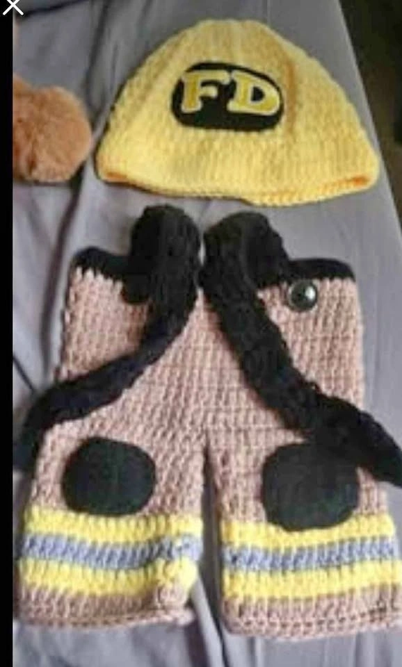 Adorable small crochet fireman jumpsuit and hat only. $15 cash