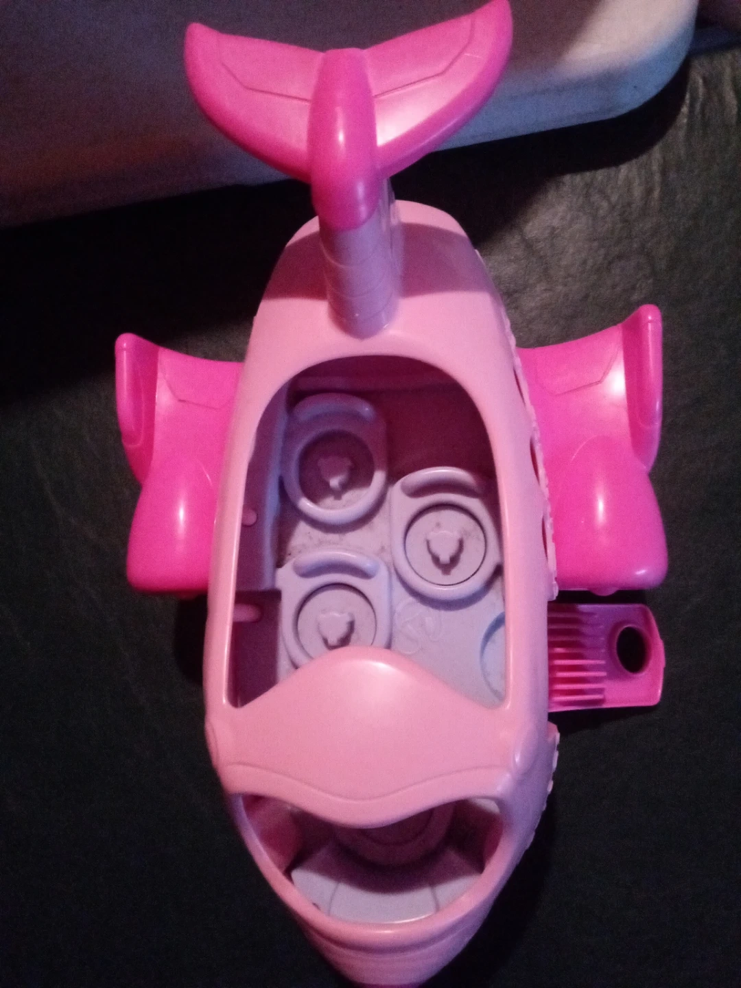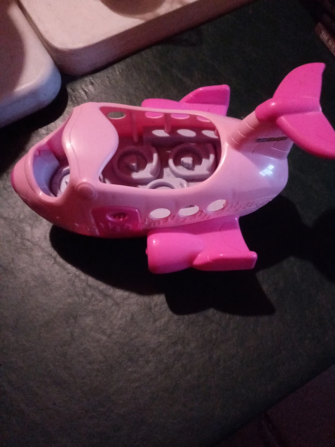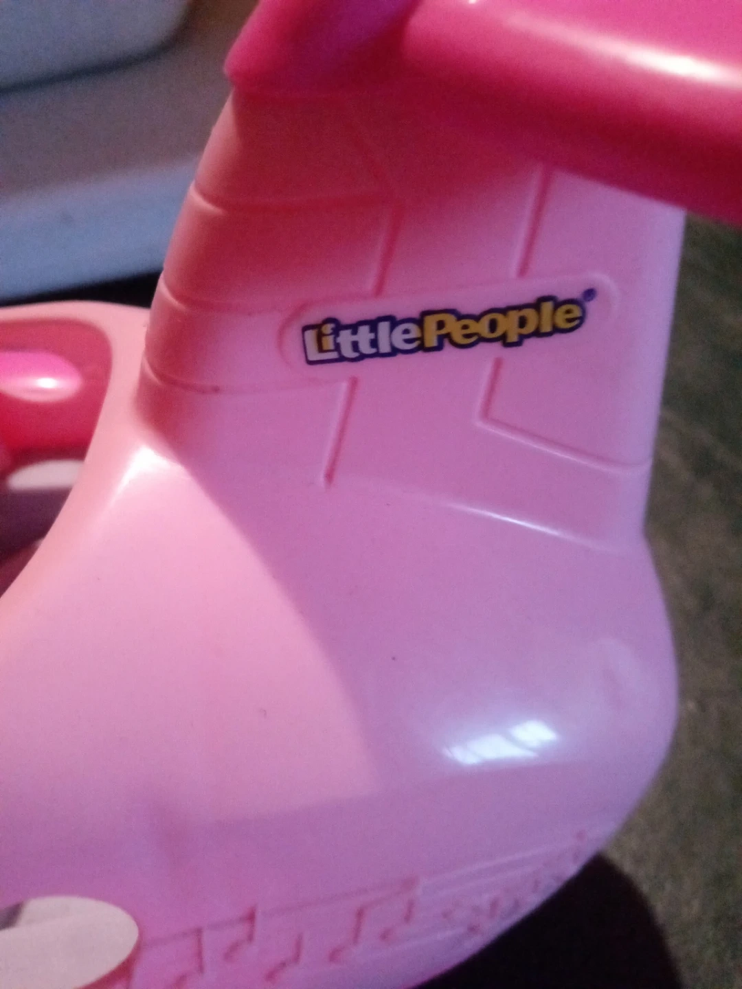 This is a pink Little People airplane toy. It has a hinged door on the side and seats inside. Made of durable plastic for playtime adventures! Just airplane no characters. From an animal and smoke free home. Cash only. Purchase and pickup in North Riverside.