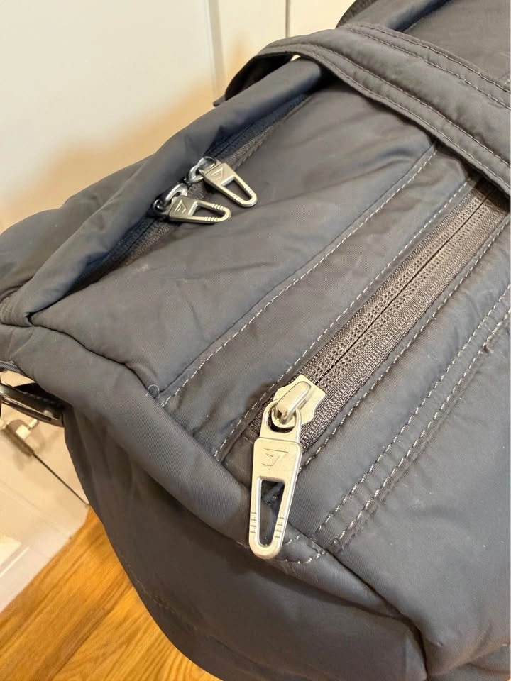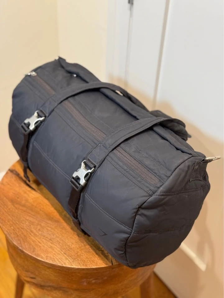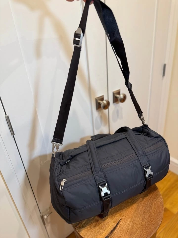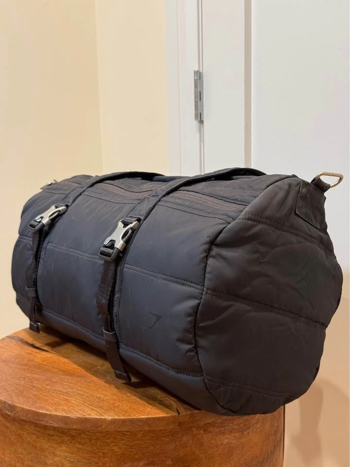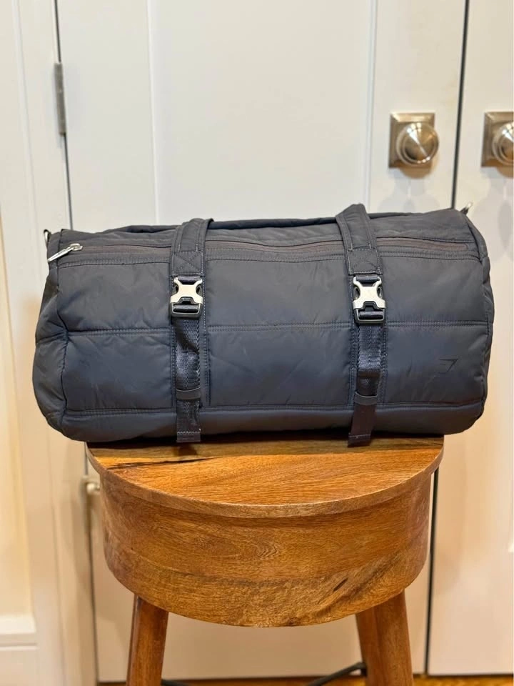 Upgrade your gear with this premium Gymshark Quilted Duffle. Whether you’re heading to a high-intensity workout, a yoga flow session, or a quick weekend getaway, this bag is designed to keep up. The modern "puffer" look gives it a high-end studio vibe while remaining incredibly functional. Studio-to-Street Style: The quilted matte black finish looks just as good in a yoga studio as it does in the weight room. Spacious & Organized: Large enough to fit a yoga towel, change of clothes, and your favorite sneakers, with extra zip pockets for your essentials. Premium Build: Features heavy-duty buckles and reinforced straps designed for daily use. Multiple Carry Options: Use the comfortable top handles or the adjustable shoulder strap for a hands-free trek to the gym or studio. Excellent pre-owned condition. All zippers and clips are in perfect working order. Clean and ready to use!