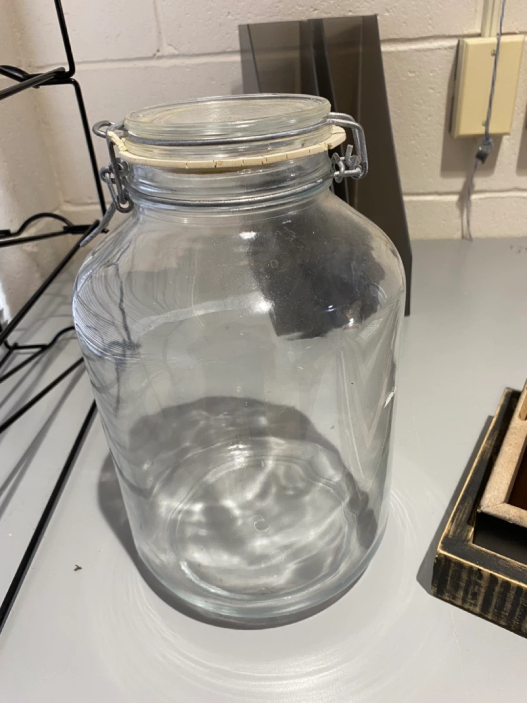 This is a large, clear glass jar with a secure clamp lid. It's ideal for storing dry goods, pantry staples, or even decorative items. The glass construction makes it easy to see contents at a glance!