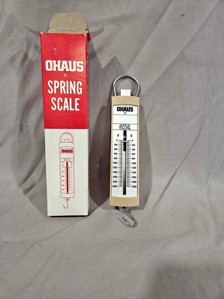 This Ohaus spring scale is in great condition, potentially fresh from box, and used for lighter objects. Feel free to message if you have any questions!