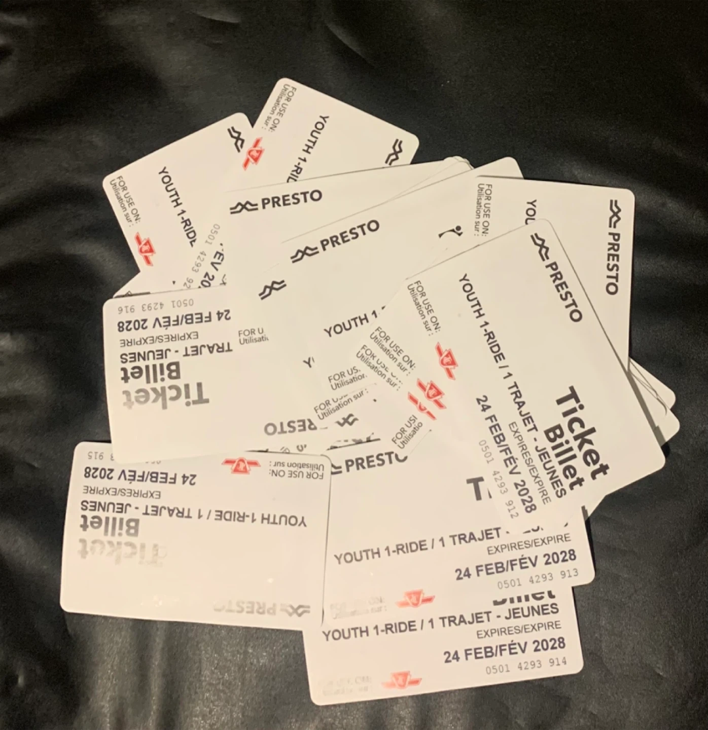 40 Presto tickets. Each ticket is valid for one ride and expires on February 24, 2028. They are valid for adult.
