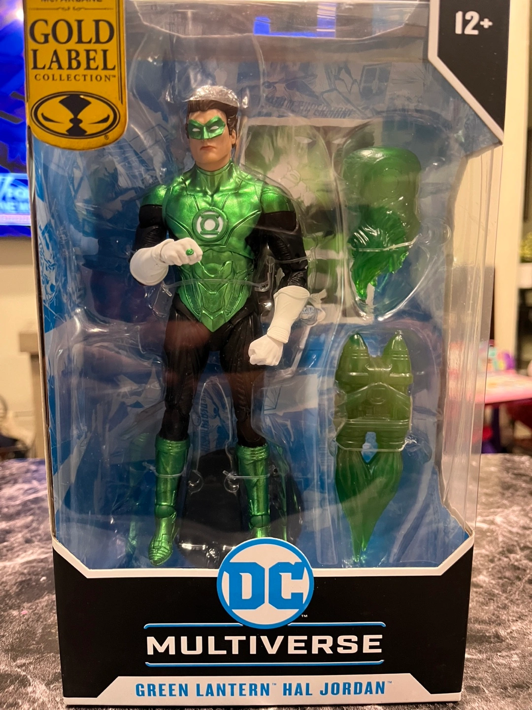 Selling a McFarlane Gold Label Collection DC Multiverse Green Lantern Hal Jordan action figure. It's still new in the box and recommended for ages 12+