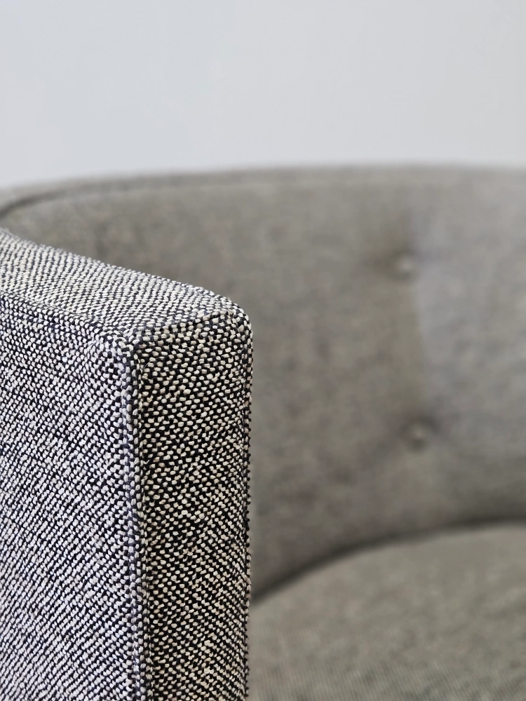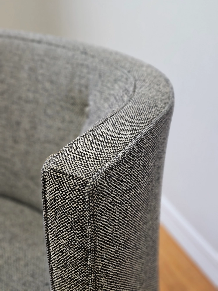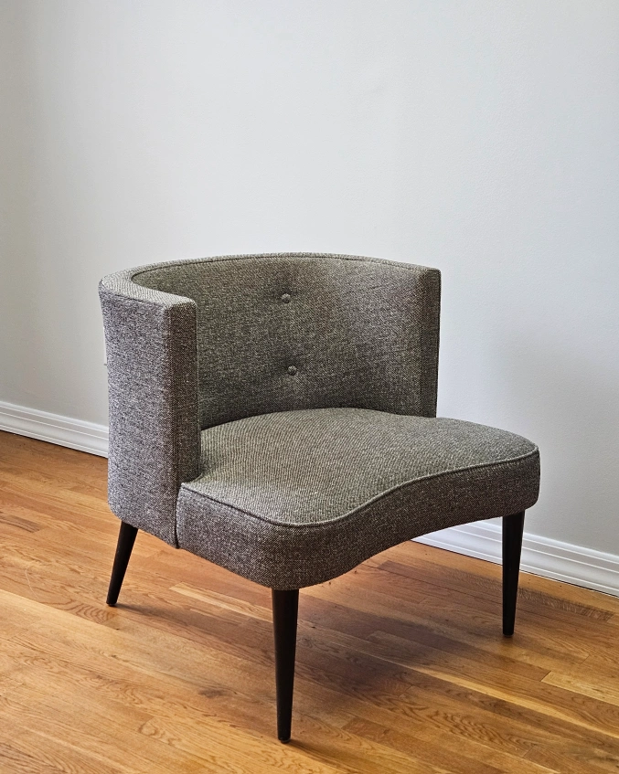 Room and Board side chair in excellent condition. Classic and elegant design with neutral tweed grey fabric fits any decor.