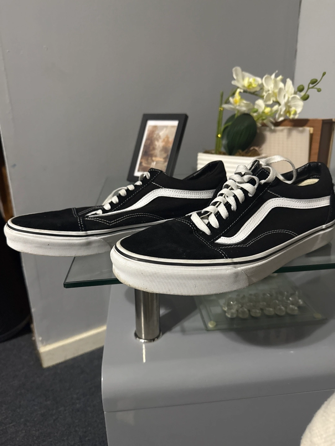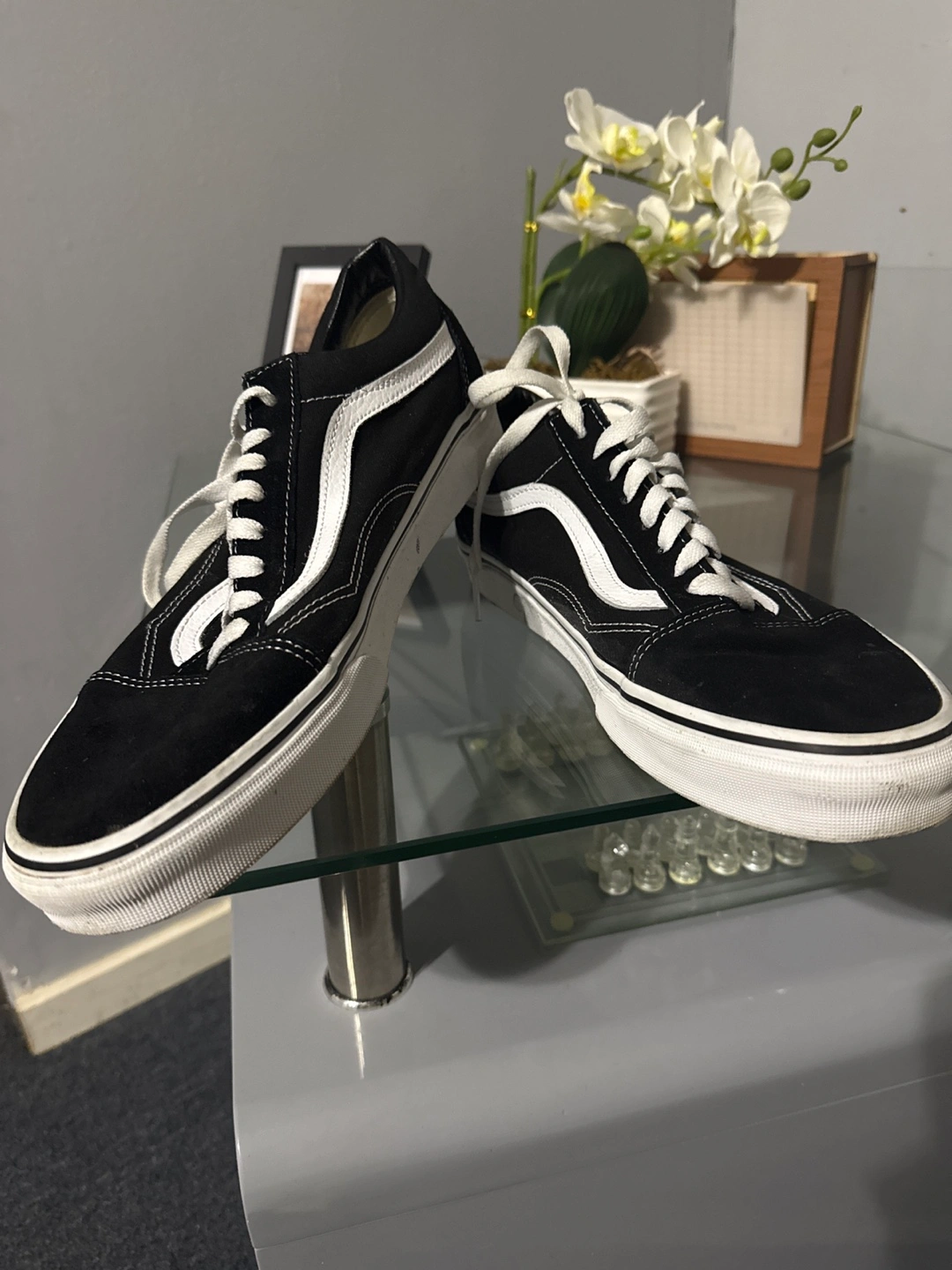 Selling a pair of classic Vans Old Skool sneakers in black and white! They're in good condition and ready for a new home. These are a versatile and stylish choice for everyday wear.