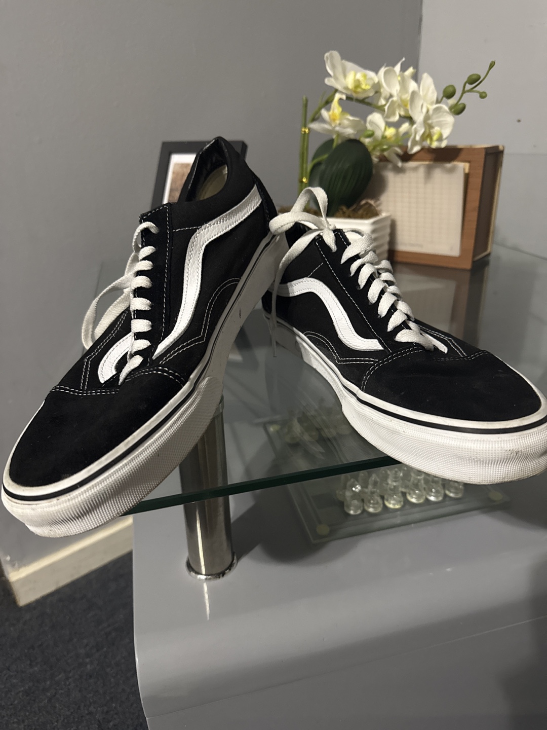 Selling a pair of classic Vans Old Skool sneakers in black and white! They're in good condition and ready for a new home. These are a versatile and stylish choice for everyday wear.