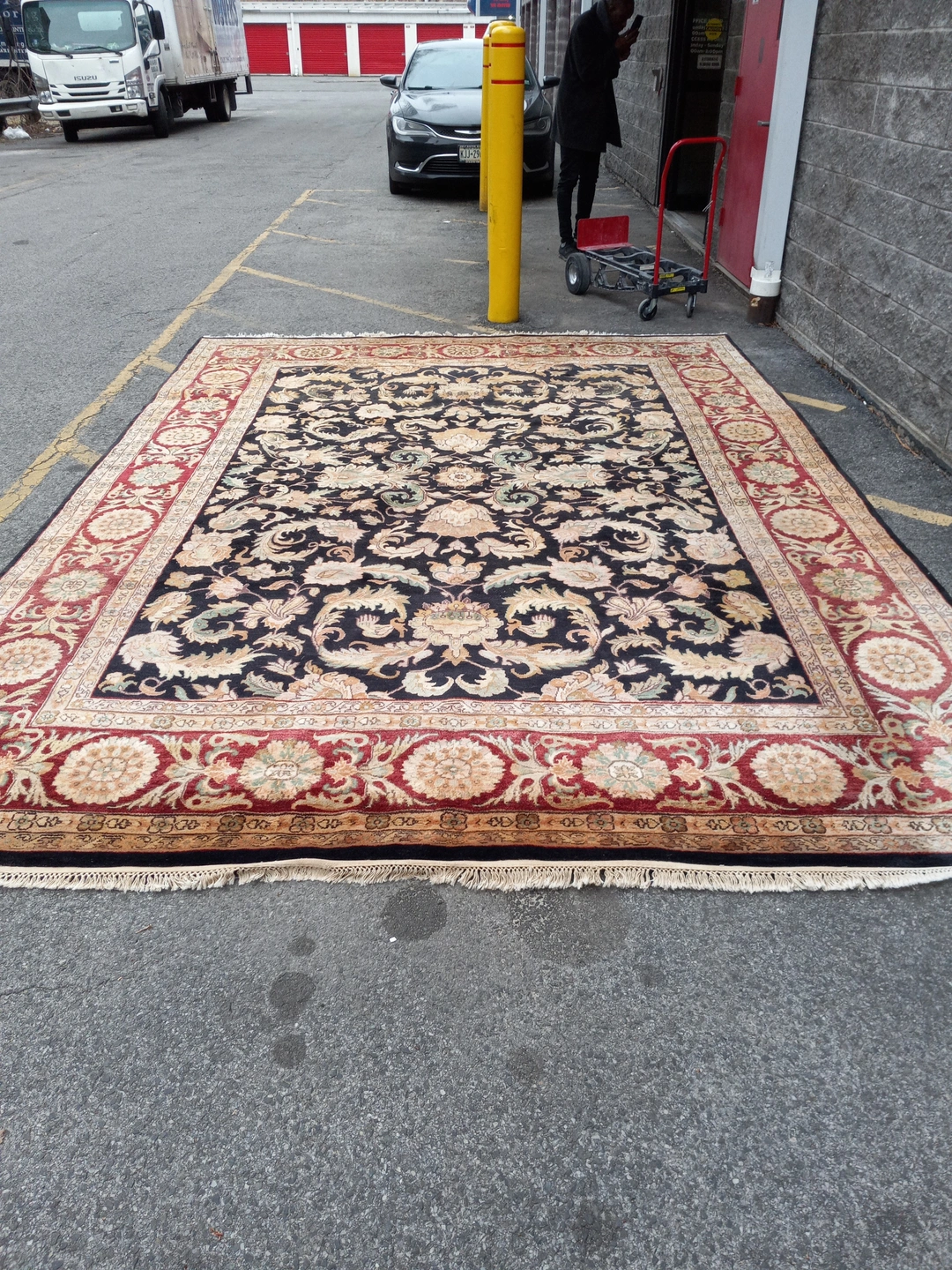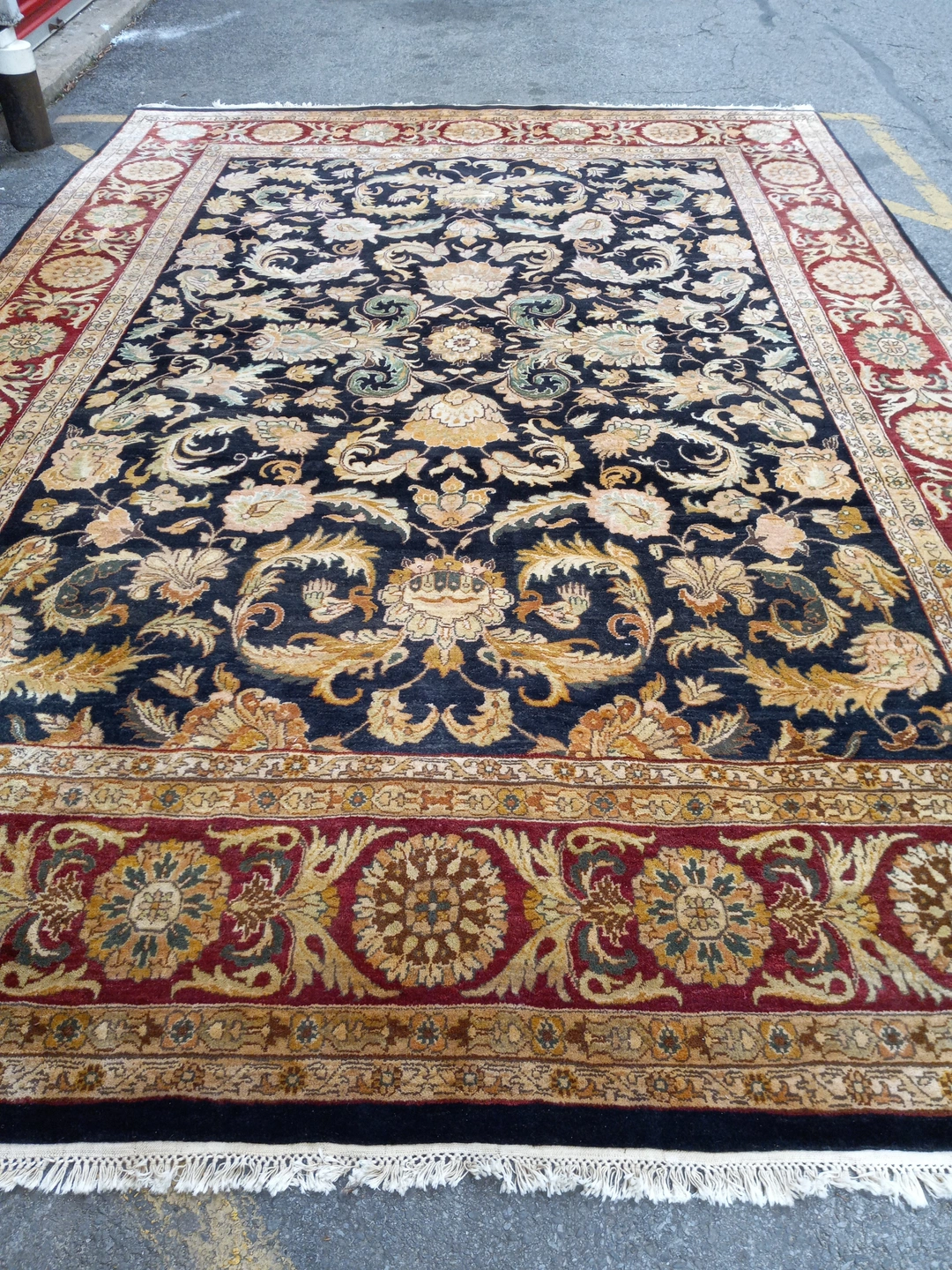 This Floral Oriental rug offers sturdiness and durability because of its high-quality and all-natural 100% wool. This all-natural 100% wool rug will redefine your home decor with sophistication and warmth that will surely redefine your decor. The dimensions of this rug are 9' x 10'. Pick up Only.