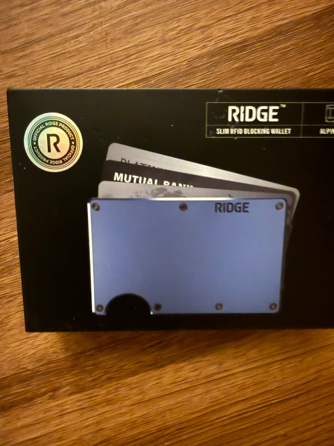 Selling a Ridge Slim RFID Blocking Wallet in blue. It's in excellent condition and comes with the original box. This wallet is designed for life and is a great way to keep your cards safe and secure!