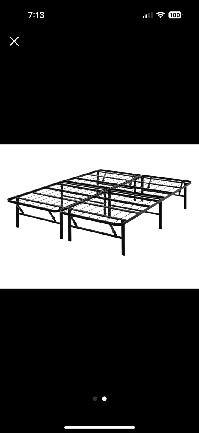 Selling a sturdy king size metal bed frame in black! It's in great condition and ready to support your mattress. Perfect for a minimalist bedroom setup