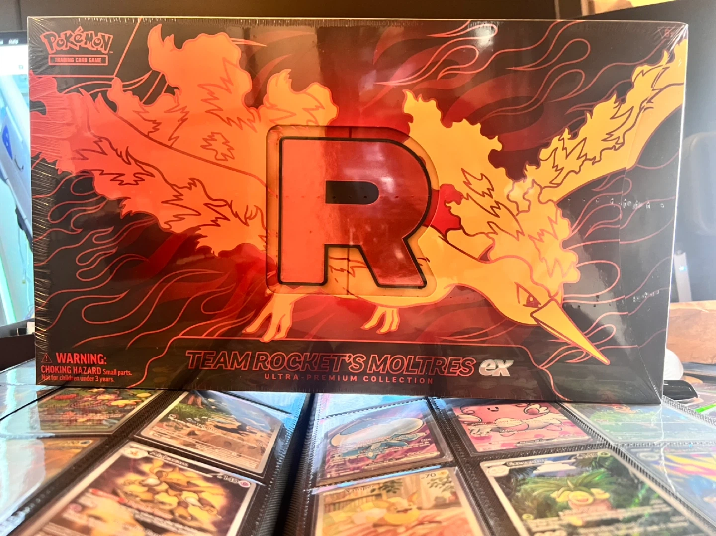 I'm selling a brand new, sealed Pokémon Trading Card Game Team Rocket's Moltres ex Ultra-Premium Collection!
