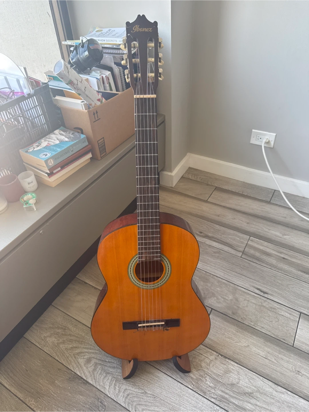 Selling an Ibanez classical guitar. It's in good condition and ready for a new home. Perfect for beginners or experienced players alike!