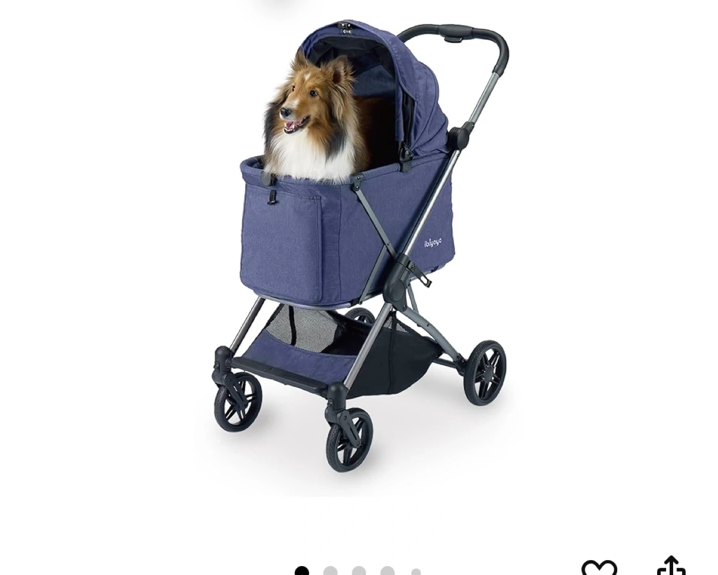 ibiyaya Maxi Deep Carriage Pet Stroller for Cats and Small Dogs – Flat-Free Rubber Wheels, One-Hand Fold, Extra-Tall Cabin (Royal Blue)-brand new in box