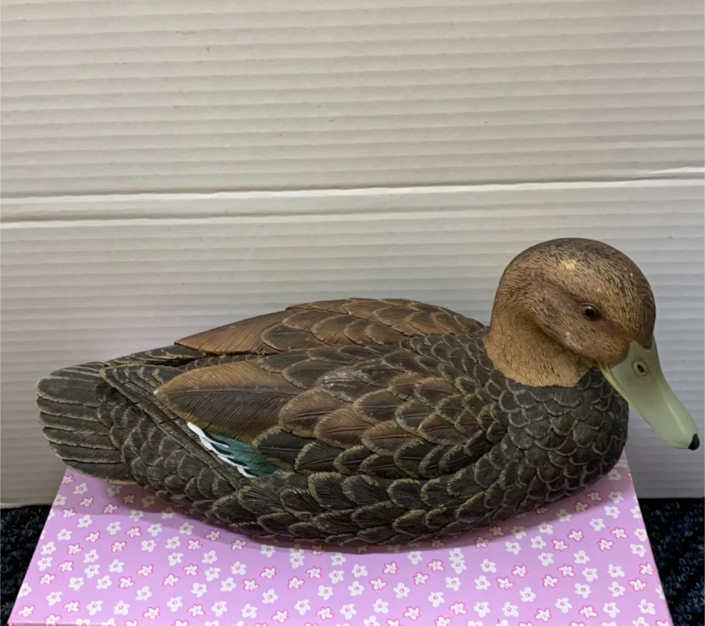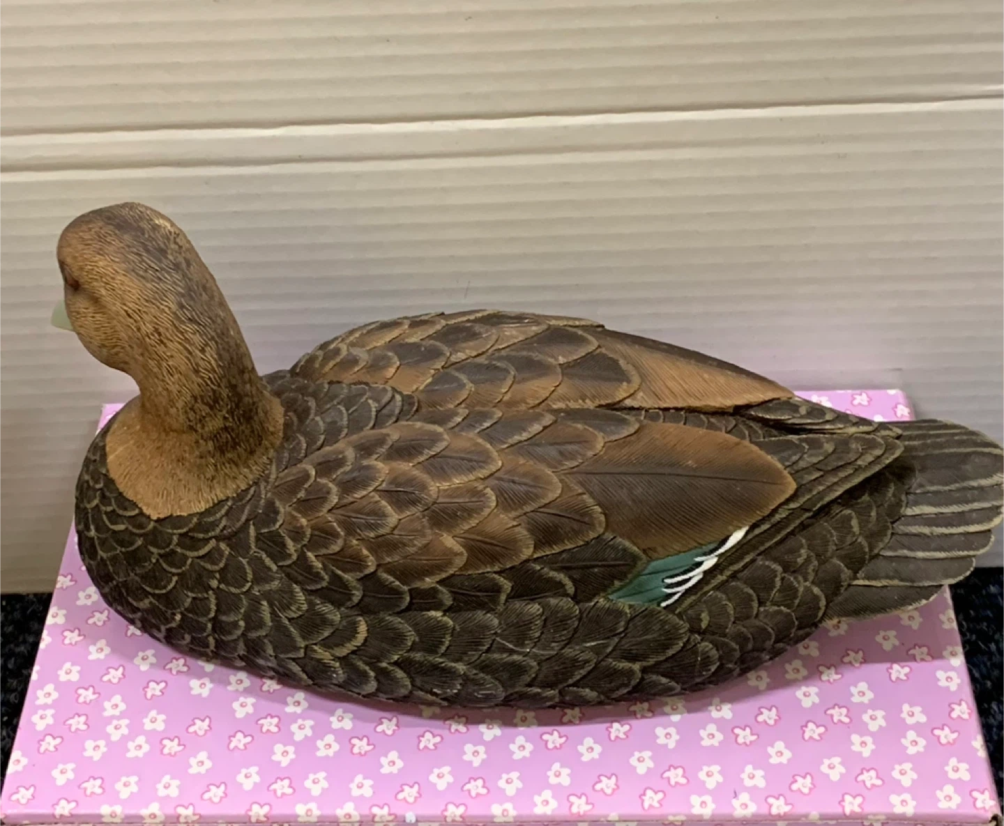 Beautiful duck decoy with detailed feather pattern and natural brown tones. Features subtle painted accents on the wings. Great for rustic, farmhouse, or cabin décor. Great for decor, collectors, or a cute gift.