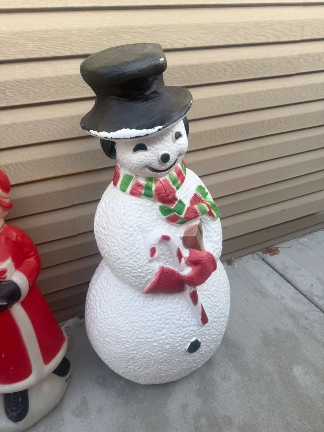 Selling a vintage blow mold snowman, perfect for adding some holiday cheer! It stands about 41 inches tall and has a classic look. Would look great on a porch or in a yard during the holidays