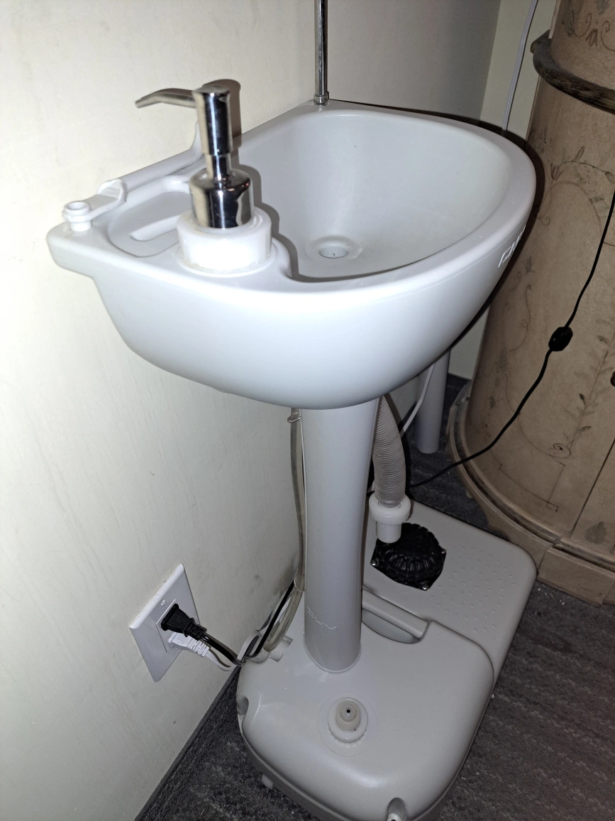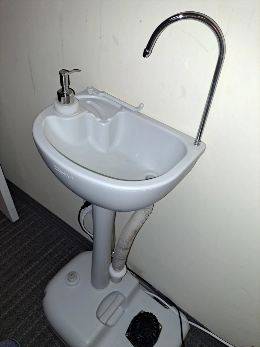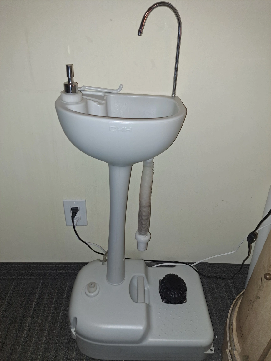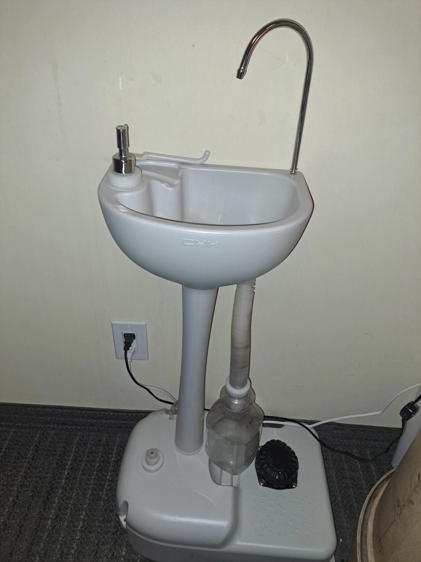 very lightweight and durable plastic. Bottom is fillable and foot pump at the base sends water up to flow from the spigot.