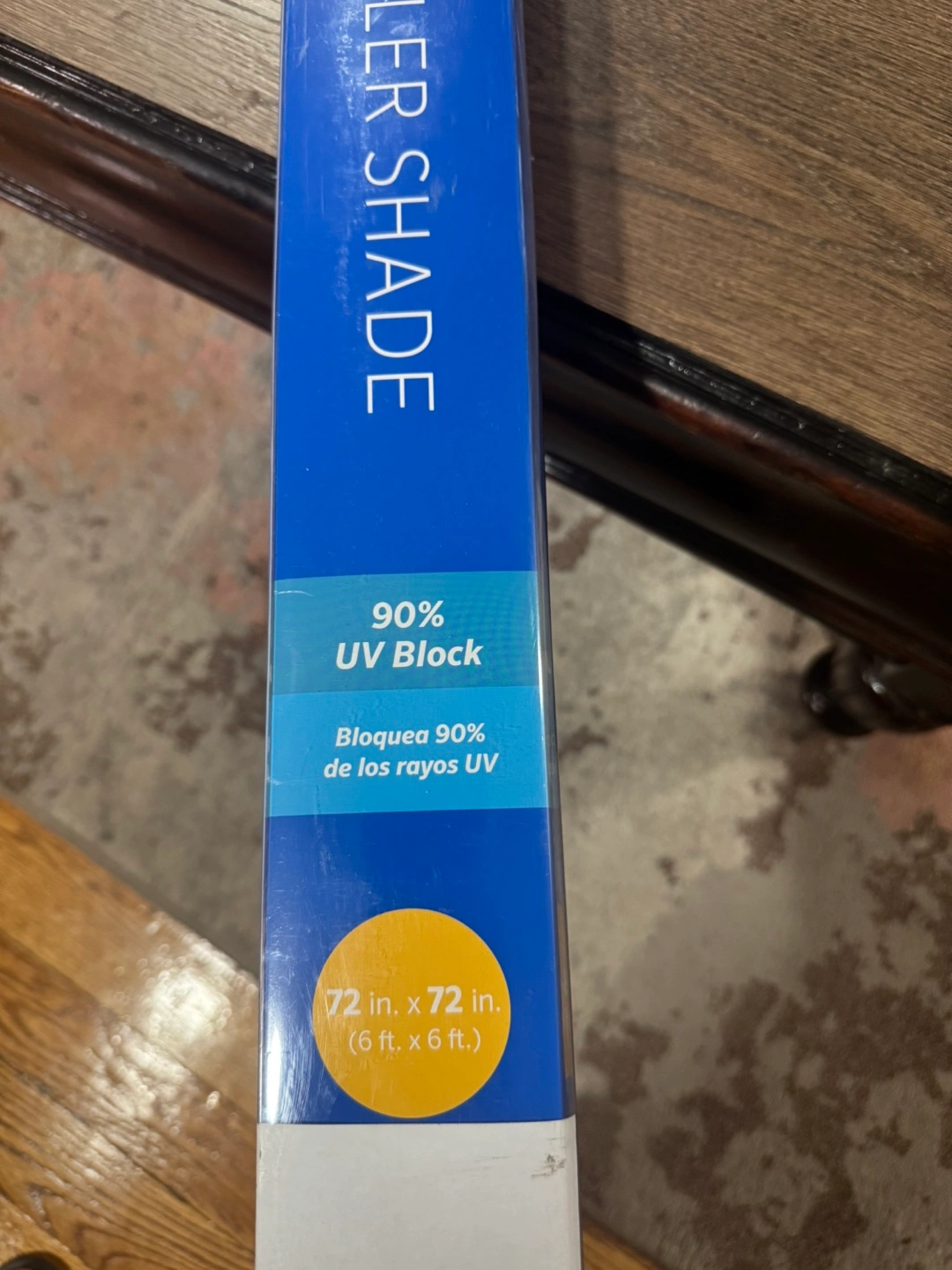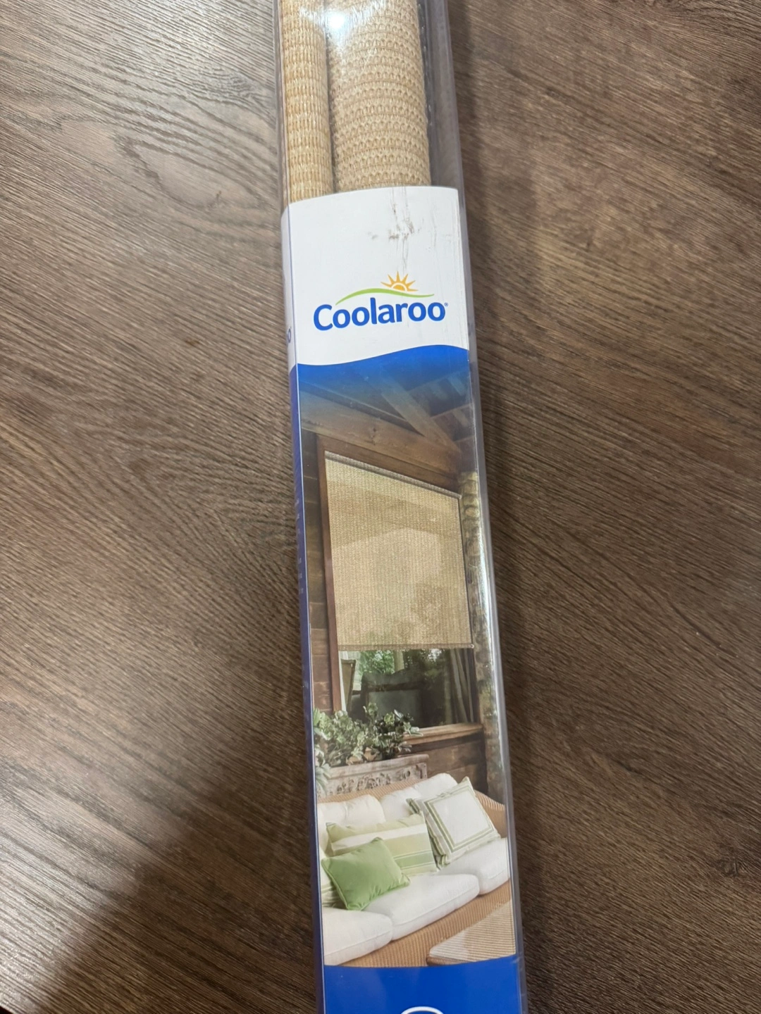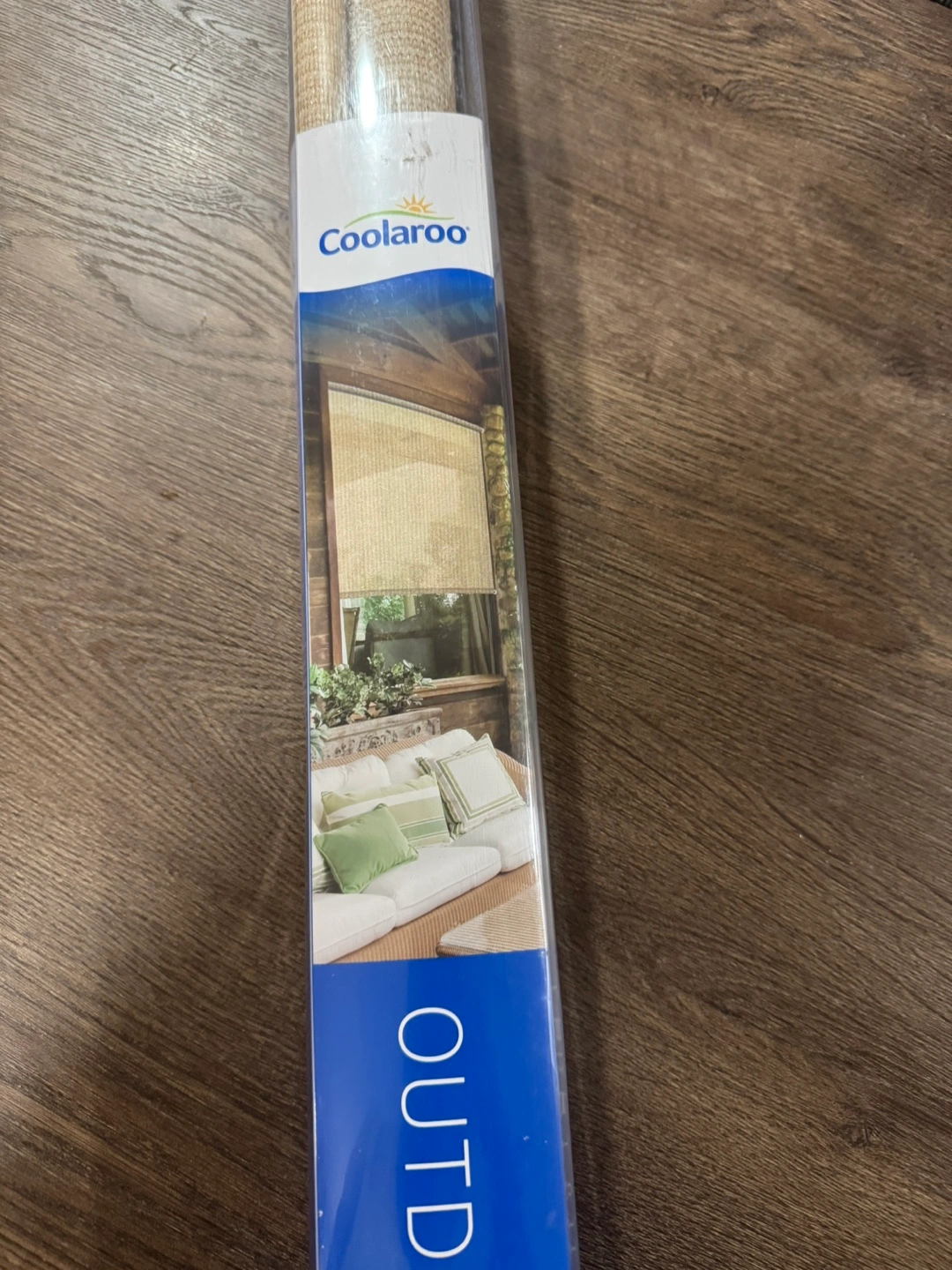 Selling a Coolaroo outdoor roller shade. It's 72 inches by 72 inches (6 ft x 6 ft) and provides 90% UV block. Perfect for creating a comfortable outdoor space!