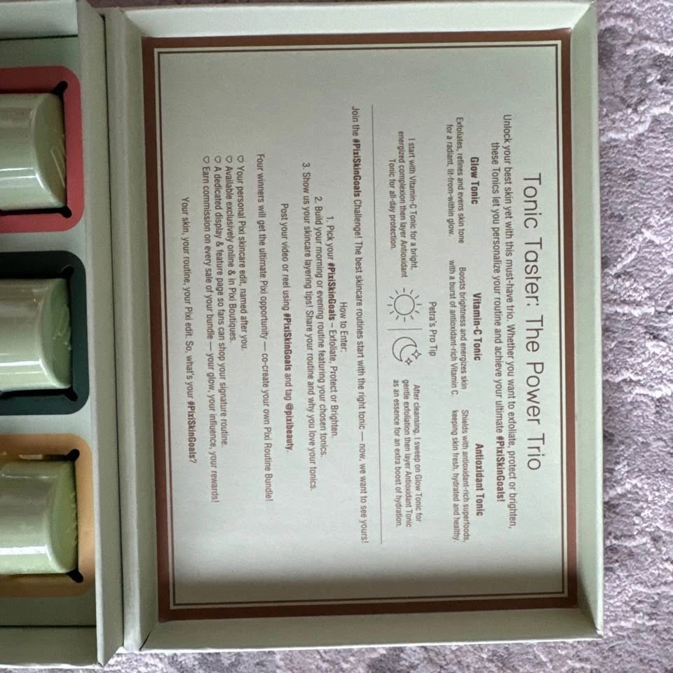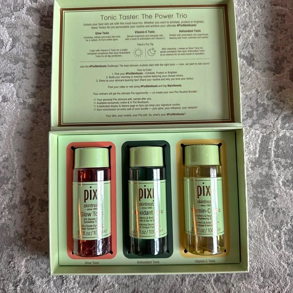 Set of 3 Pixi tonics: Glow Tonic (3.4oz), Antioxidant Tonic (3.4oz), and Vitamin C Tonic (3.4oz). All are 100% new, authentic, and have never been opened. Feel free to message if you have any questions!