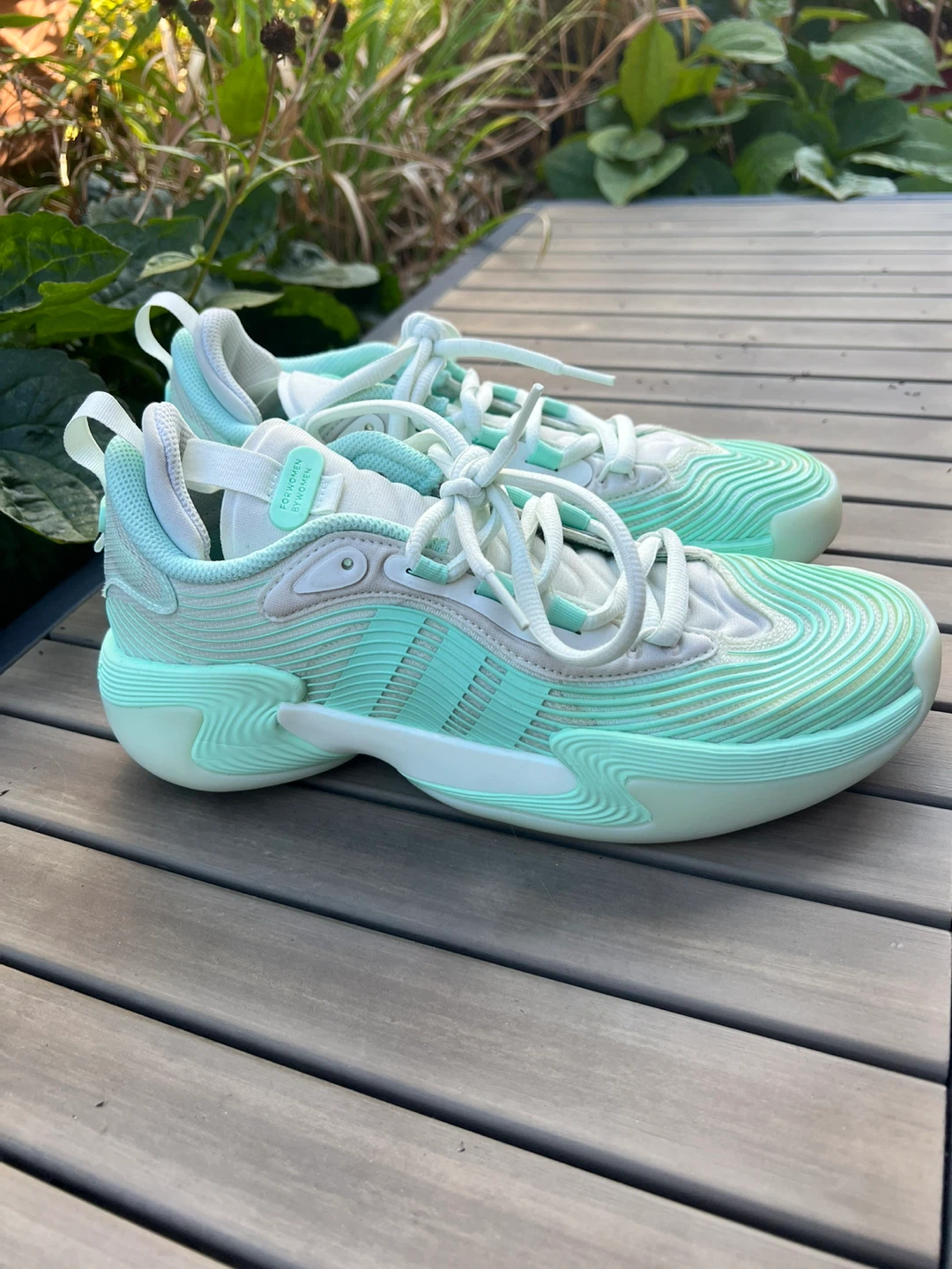 These Adidas Crazy Infinity shoes are designed for women and feature a stylish mint green color. They are perfect for adding a pop of color to your athletic or casual wear. The unique design and comfortable fit make them a great addition to any wardrobe! Size 8