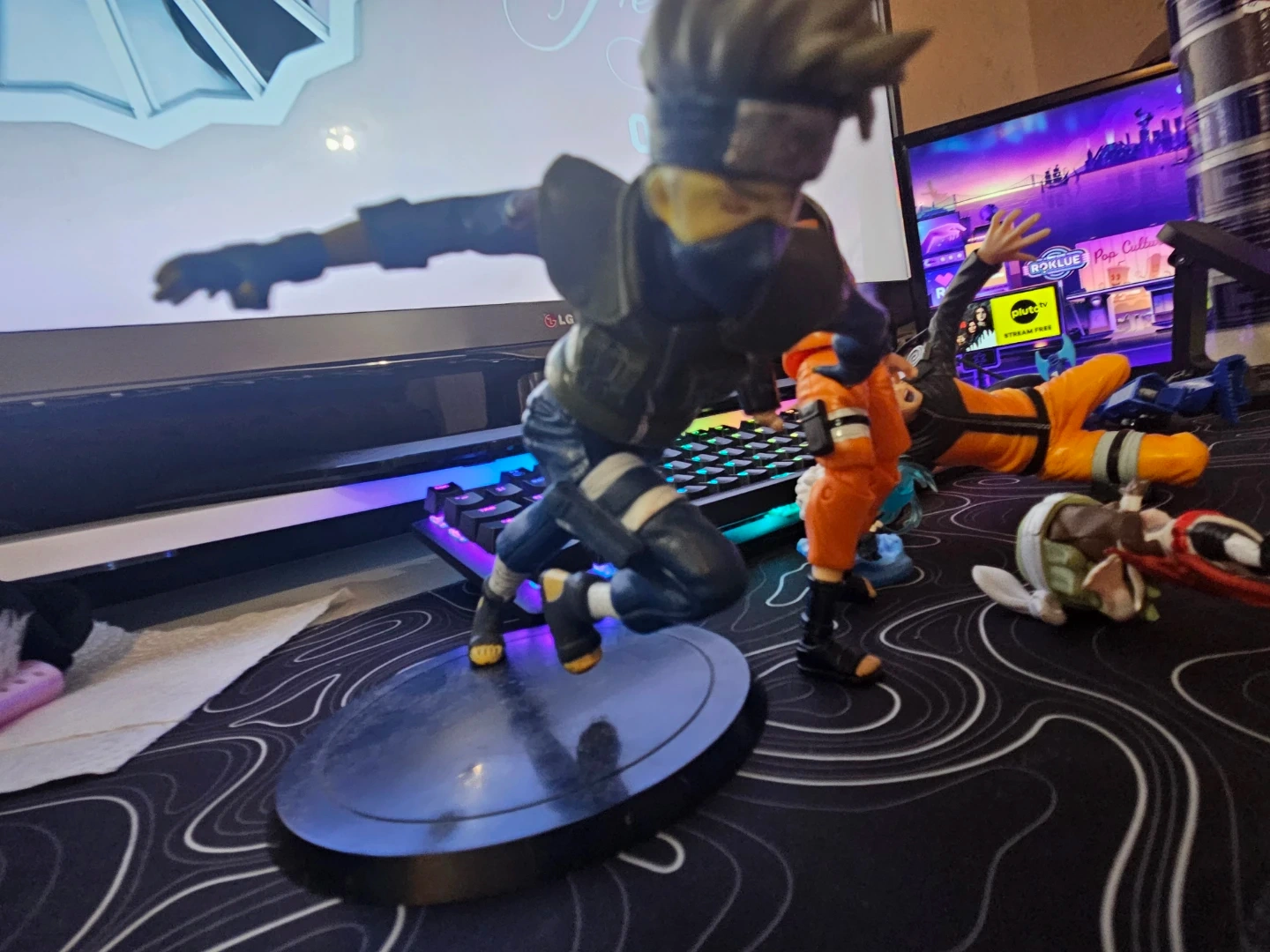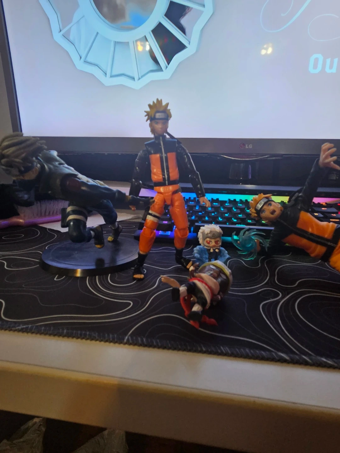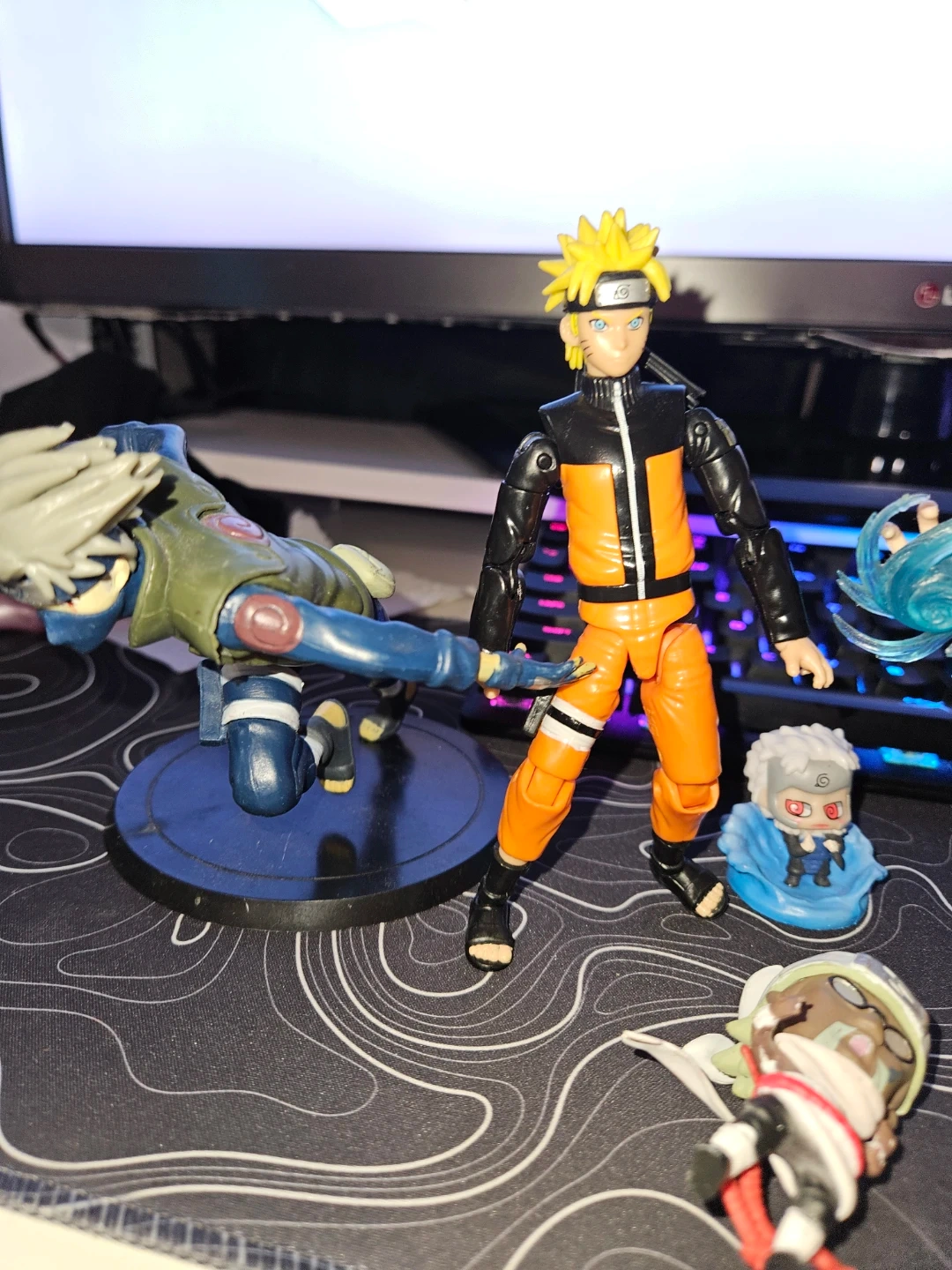 Set of Naruto and Kakashi action figures from the popular anime series. Includes additional smaller figures and accessories. Great for fans and collectors!