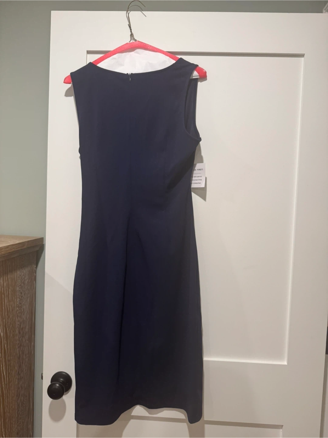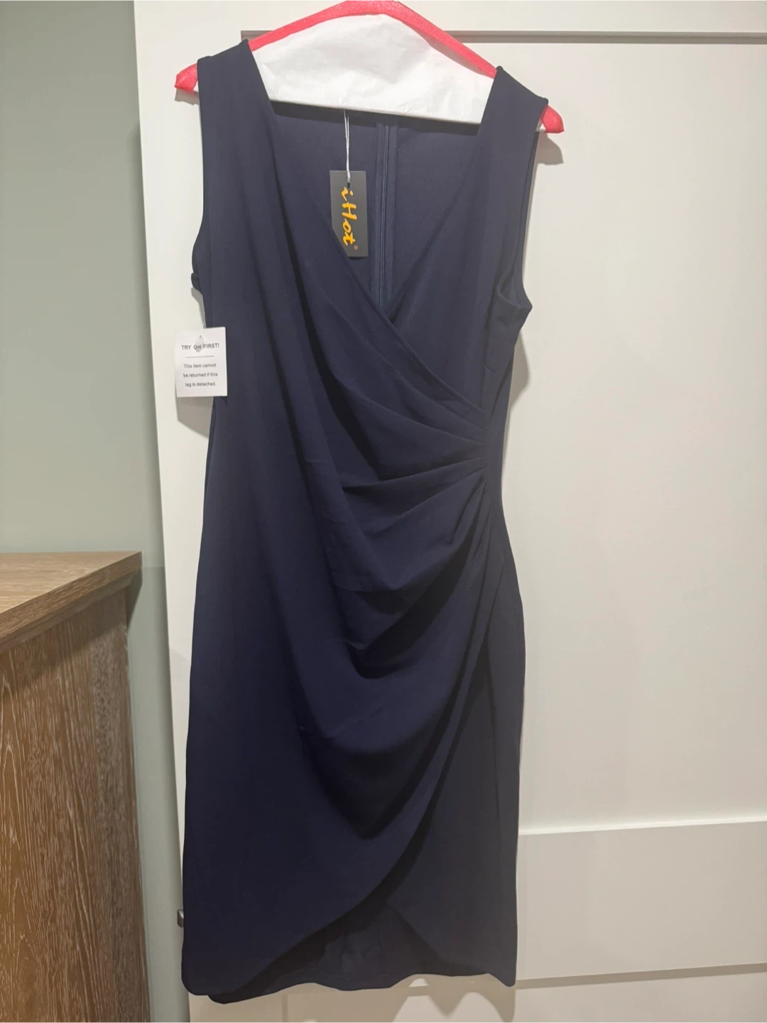 10Selling a beautiful Shai navy blue wrap dress in size 12! This dress features a flattering wrap design and is perfect for a special occasion or a night out. It's in great condition and ready for a new home