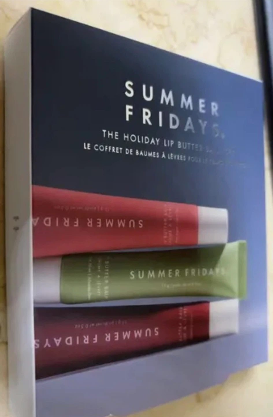 This set includes three Summer Fridays Lip Butter Balms. Each balm is 0.5 oz and comes in a colored tube. They're vegan and great for on-the-go.