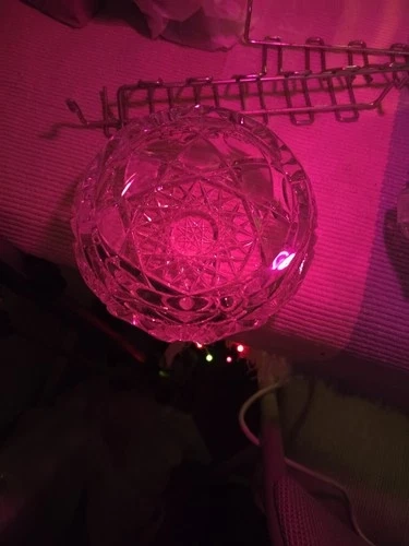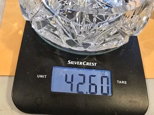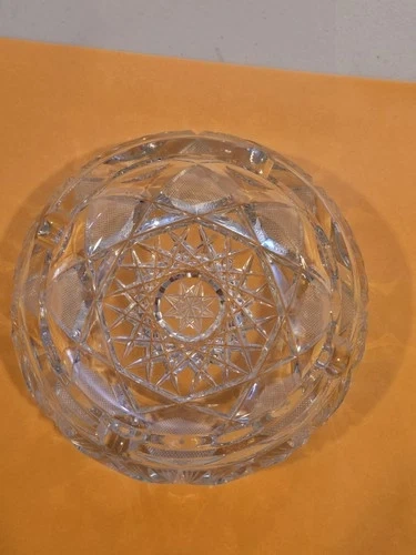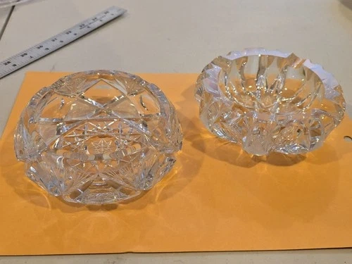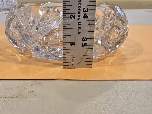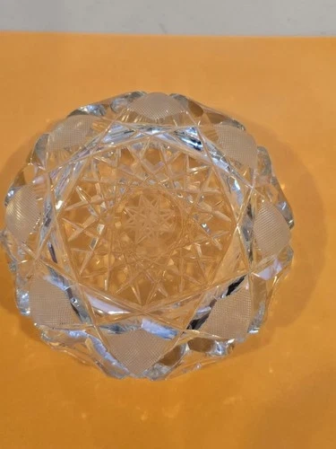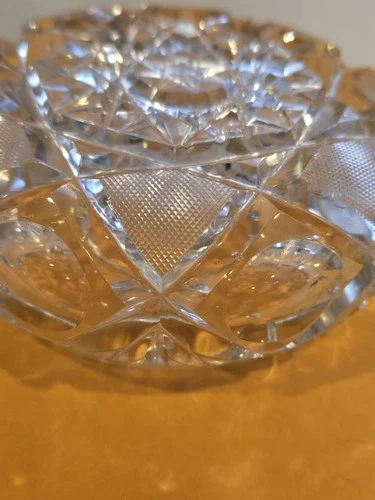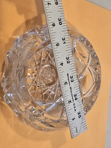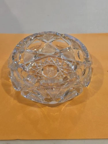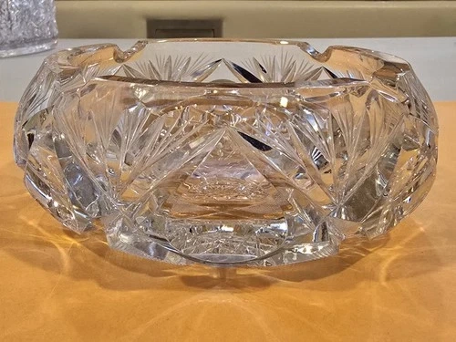 This Mid Century Modern Lead Crystal Ashtray has a 6" diameter, perfect for holding cigars or cigarettes while adding a touch of elegance to any space. Made in the United States, this collectible piece showcases the sleek and stylish design of the mid-century era. Its geometric patterns and lead crystal construction make it a unique and practical addition to any collection of tobacciana or decorative items.