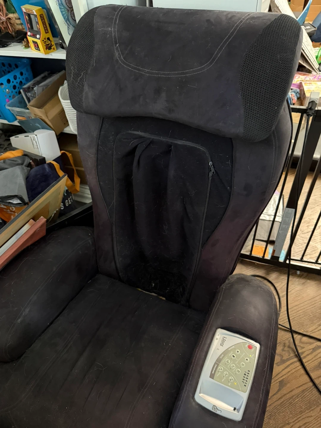 20Selling an iJoy Sharper Image massage chair! It has a remote control and various massage programs. It has settings for partial, compression, kneading, and percussion, as well as upper and lower programs. The zipper on the cushion is broken, but still here. Video of it working upon request.