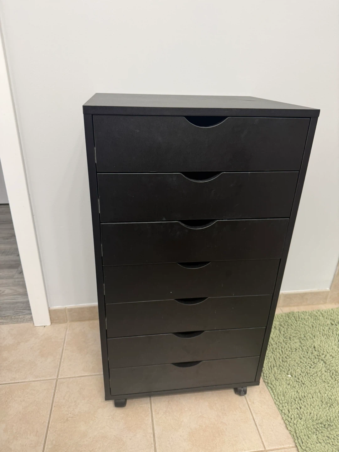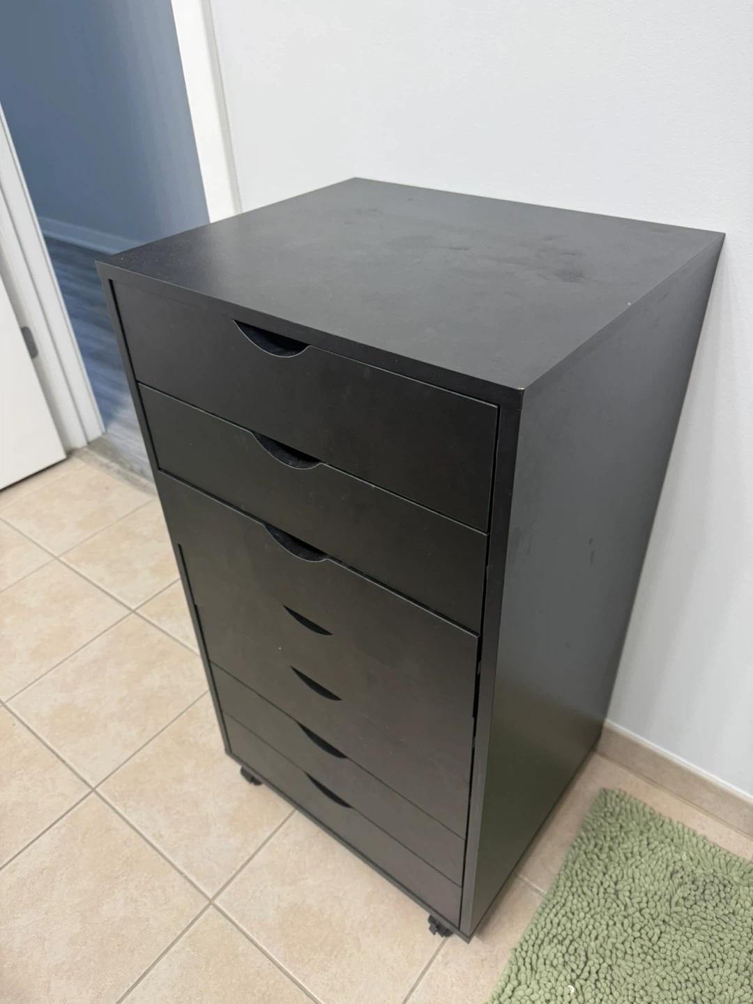 65Selling a black IKEA Alex drawer unit in great condition! It's perfect for organizing your space, whether it's for makeup, crafts, or office supplies. This unit has six drawers and is on casters, so it's easy to move around. It's a great addition to any room!