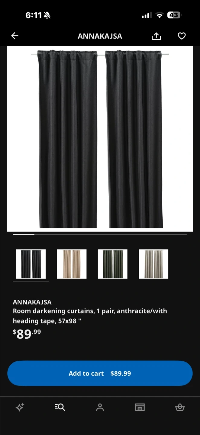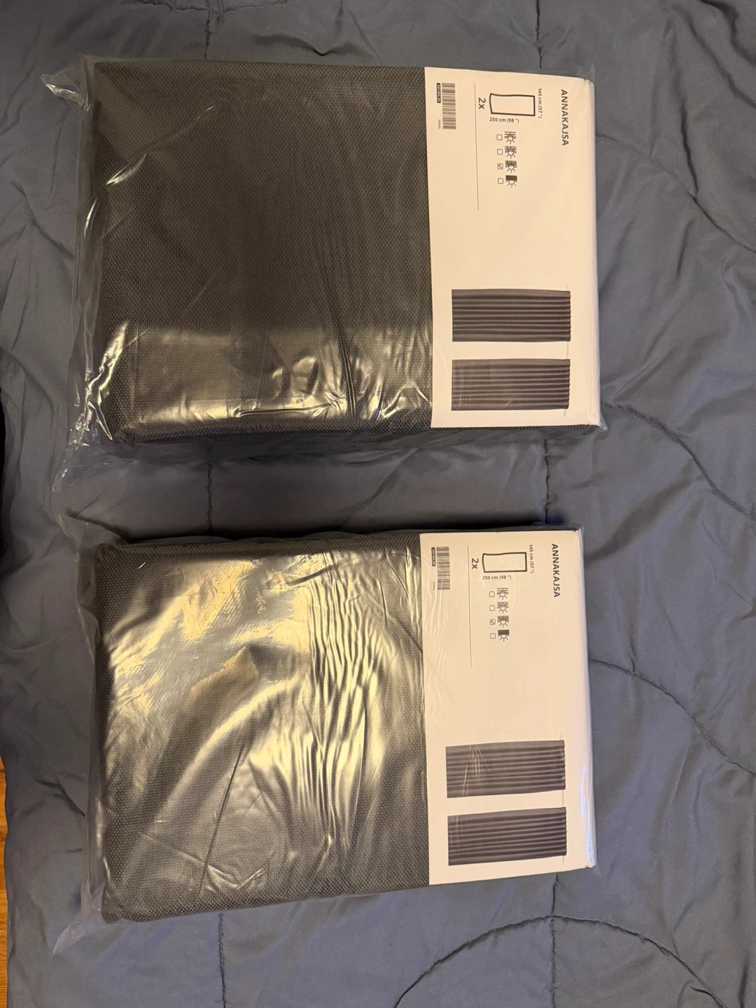 10Selling a pair of IKEA ANNAKAJSA room darkening curtains. They're anthracite/dark gray and each panel measures 57x98 inches (145x250 cm). Original price $89 per pack. You can get both for $100.