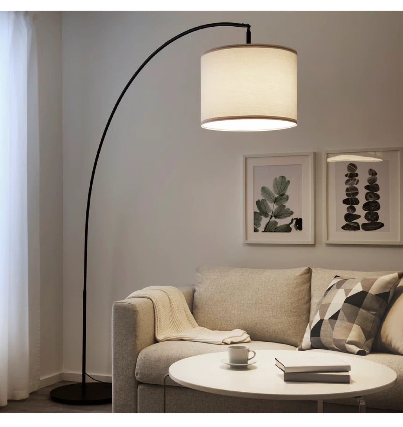 15Selling an IKEA SKAFTET arched floor lamp base in black! The lampshade and the bulb are free if you want. I bought this rattan lampshade from Etsy for about 70$. It has a few breaks now but still good to use. You can also pick your own lampshade from IKEA. The lamp base is in good condition and easy to assemble and use. Perfect for adding a touch of style to any room.