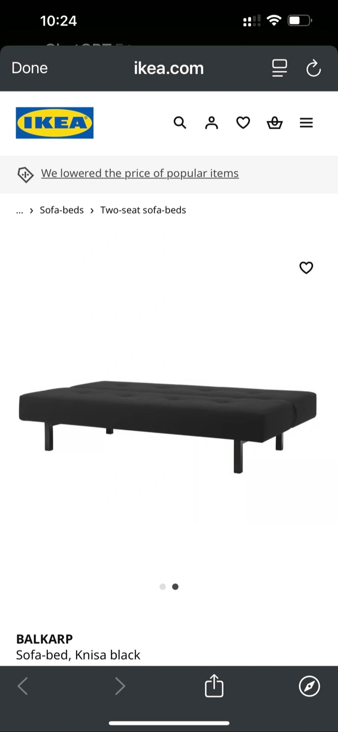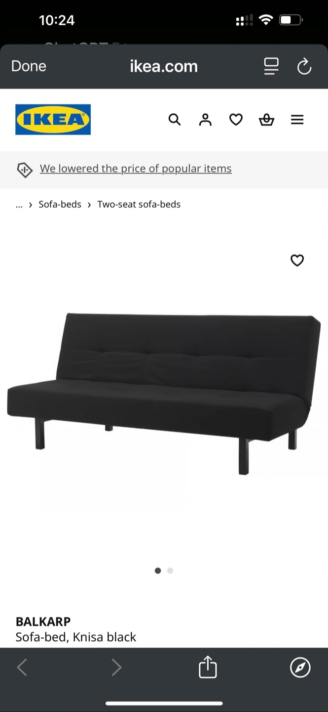 Selling an IKEA BALKARP sofa-bed in Knisa black (still In a good condition)! This sofa-bed offers around-the-clock comfort. The adjustable back allows you to sit during the day, lean back in the evening and lie down at night. The Knisa black cover fits in just about anywhere. Originally sold for $249