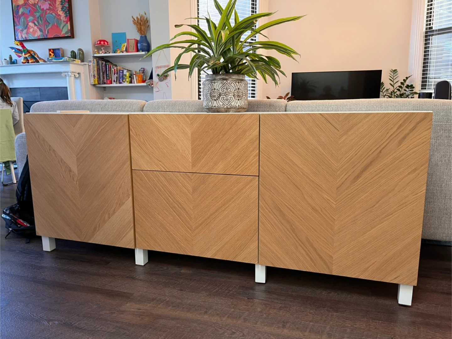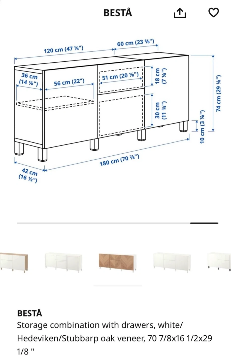 65Selling an IKEA BESTA storage combination with drawers! It features a white Hedeviken/Stubbarp oak veneer finish. The dimensions are 70 7/8x16 1/2x29". This piece offers a stylish and functional storage solution for any room