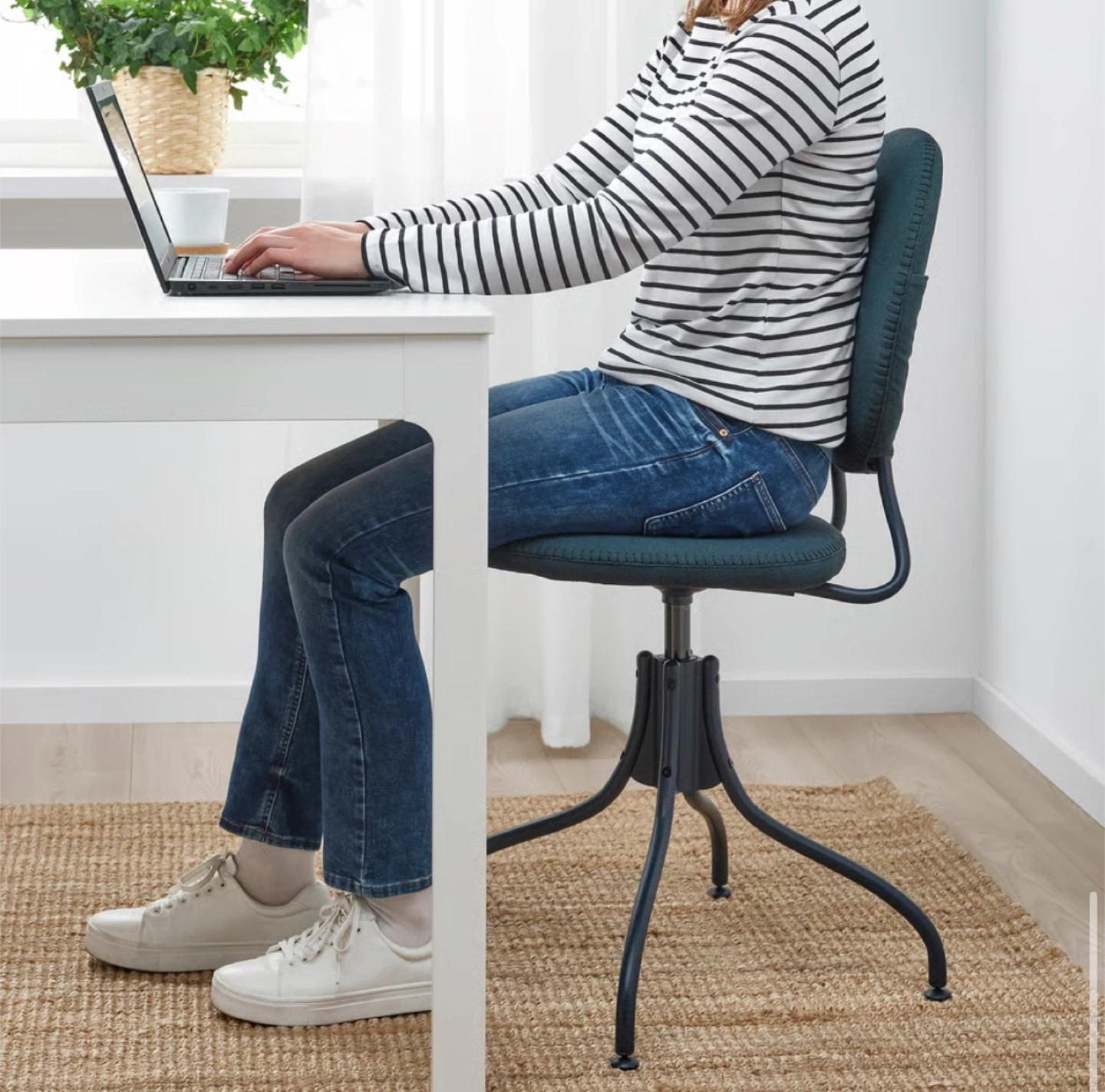 35IKEA Swivel Chair "BJÖRKBERGET" Color: Idekulla blue / Dark blue Excellent condition Article 404.871.60 Dimensions: check last photo for details. Generous padding in the seat and backrest makes this chair a great choice if you want to sit comfortably at the desk. This swivel chair has functions that allow you to easily adapt the chair to your body. Adjustable seat height – Promotes good posture and reduces strain on lower back. Adjustable feet make it sit securely on uneven floors. Washable – Removable covers make cleaning easy and keep the chair fresh. Value in store 119.99$ *Cash only. thank you.