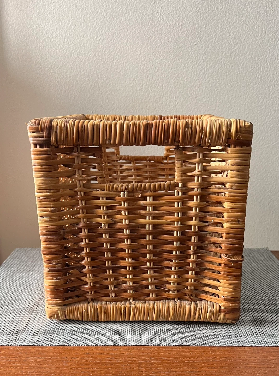 The handwoven rattan gives each basket a distinct and natural shading. This sturdy basket is perfect for your many storage needs -use to organize items in your bathroom, pantry, etc. Easy to carry with the built-in side handles. Dimensions: 9” W x 10” D x 9” H Pick up only near Astoria Park, Queens NYC 11102 Only Cash (preferred) or Venmo for payment Check out my other listings!