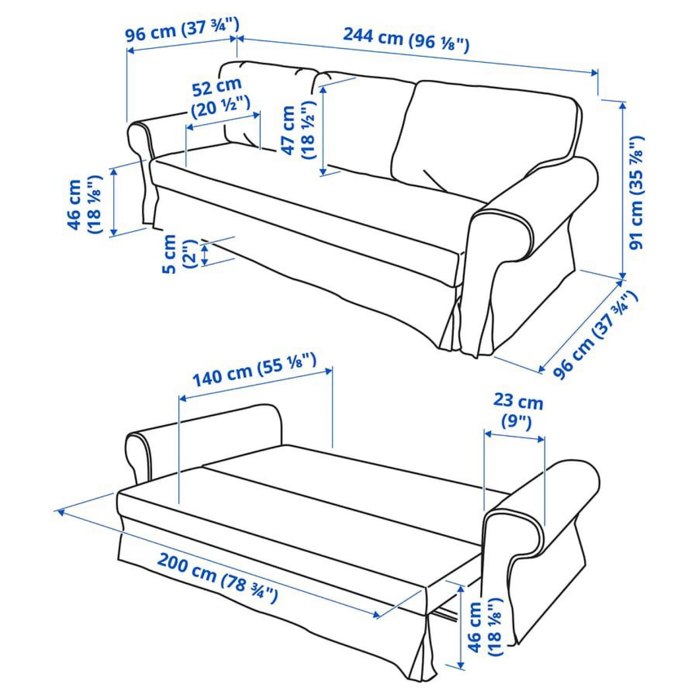 70Selling an IKEA EKTORP sleeper sofa in beige. It easily converts into a bed, perfect for guests! Dimensions: - Width: 96 1/8" - Depth: 37 3/4" - Height: 35 7/8" - Seat depth: 20 1/2" - Seat height: 18 1/8" - Bed width: 55 1/8" - Bed length: 78 3/4"