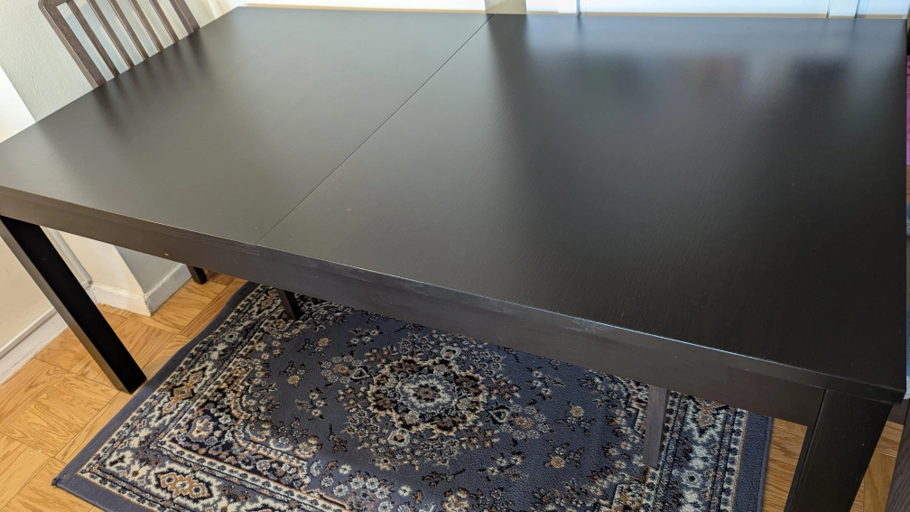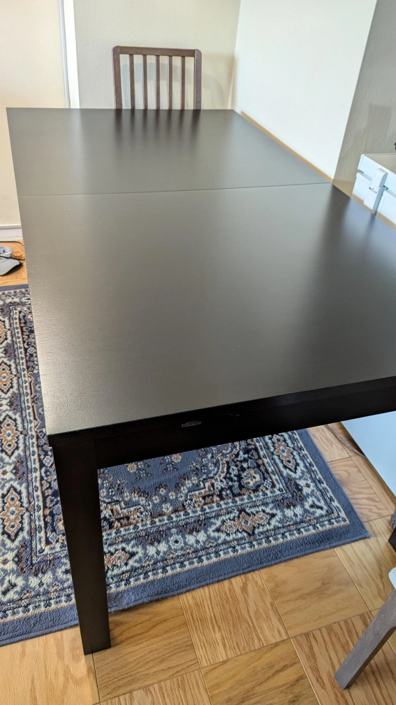 Selling a dining table and chair set, perfect for family meals or entertaining guests! The table is extendable, offering flexibility for different occasions. The set is in good condition and ready for a new home. There's a set of 6 chairs that can come with the table, but for an additional fee. It's not included with the table price.
