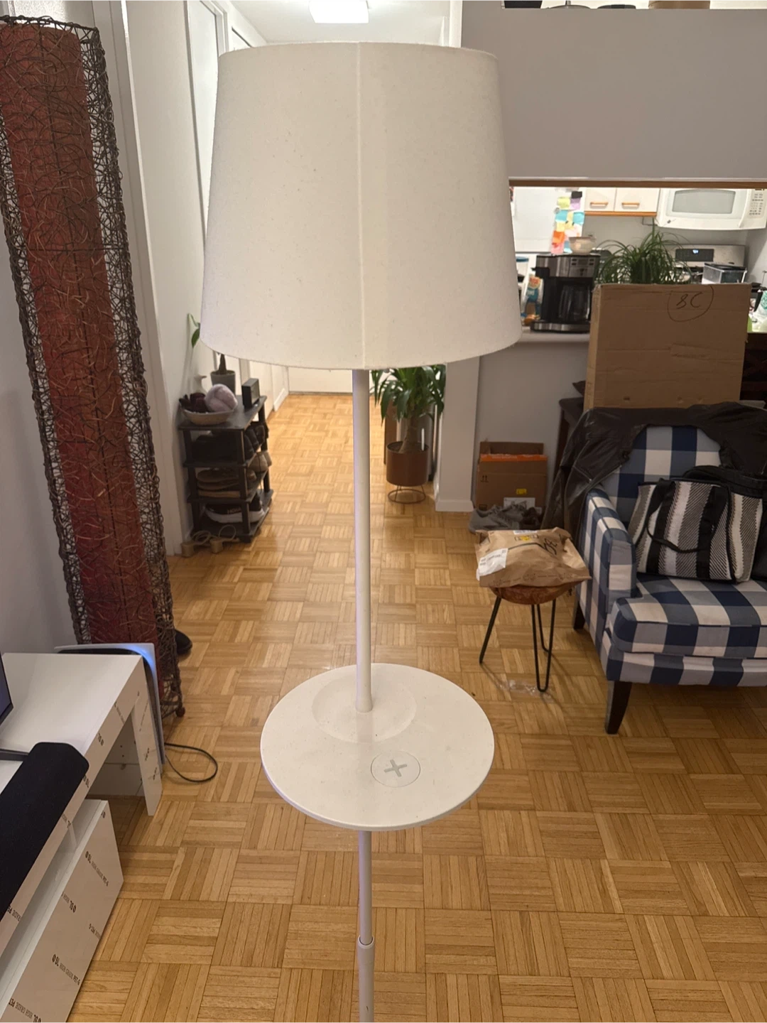 16Selling a gently used IKEA floor lamp in white. It includes a built-in wireless charger on the base, which is super convenient! It's in great condition and provides a nice ambient light for any room