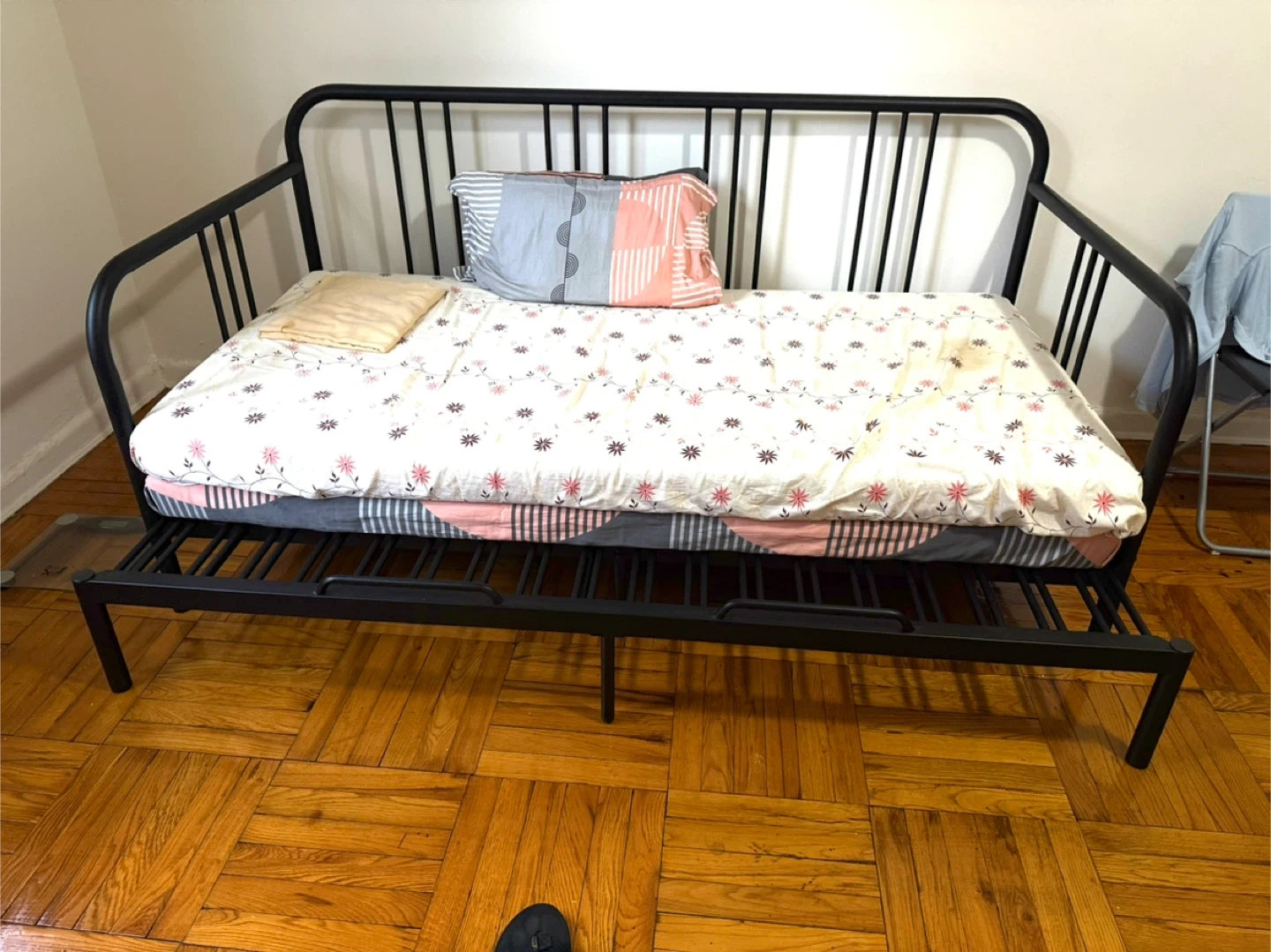 10Selling a black IKEA FYRESDAL daybed frame in twin size. It's in great condition and ready for a new home! The frame is sturdy and stylish, perfect for a guest room or small space. Originally priced at $249.00
