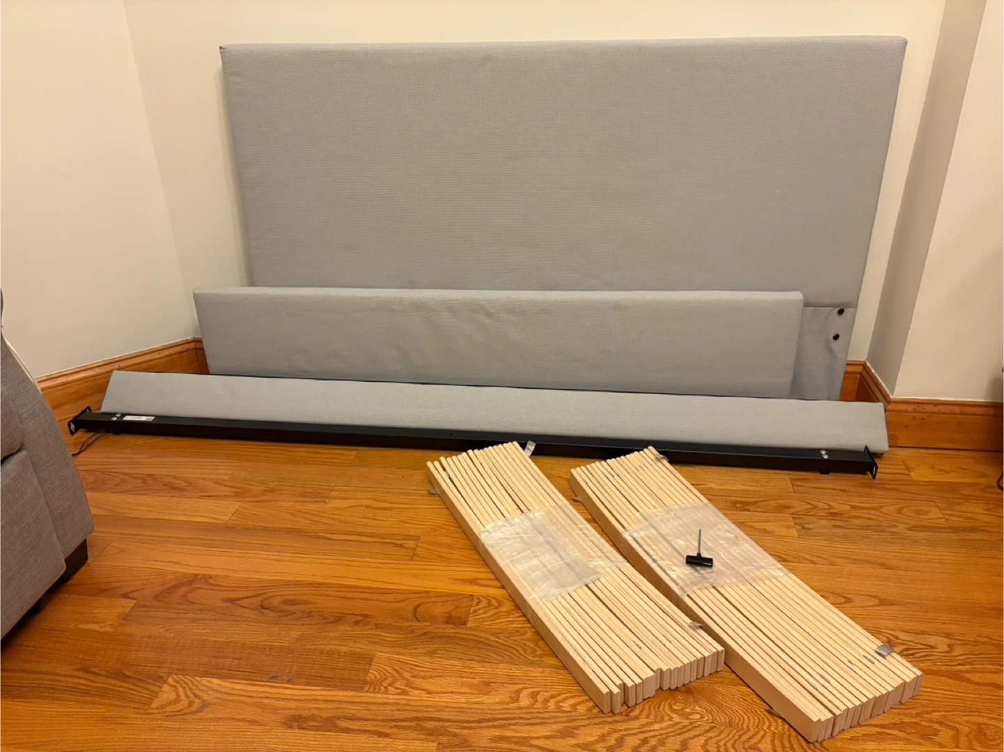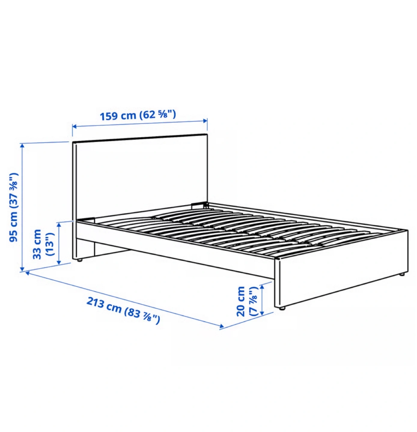 62Selling a queen size IKEA GJÖRA bed frame. It's in great condition and ready for a new home! It’s semi packed and ready to get into a car, truck, or carried by 3 people in the subway. Taking it from the apartment to street is easy and should take only a few minutes.