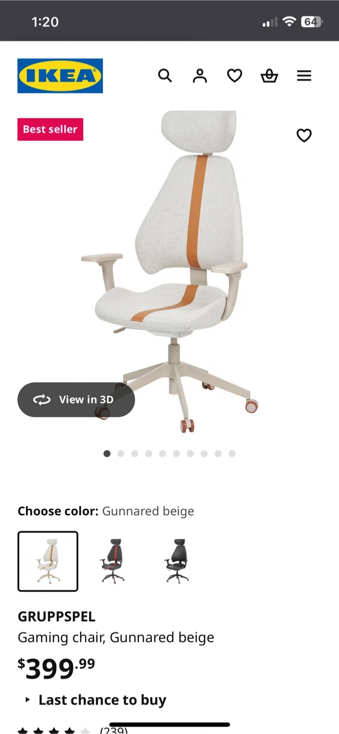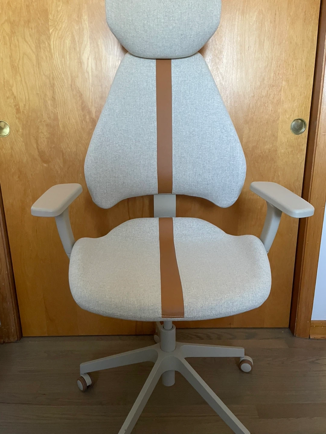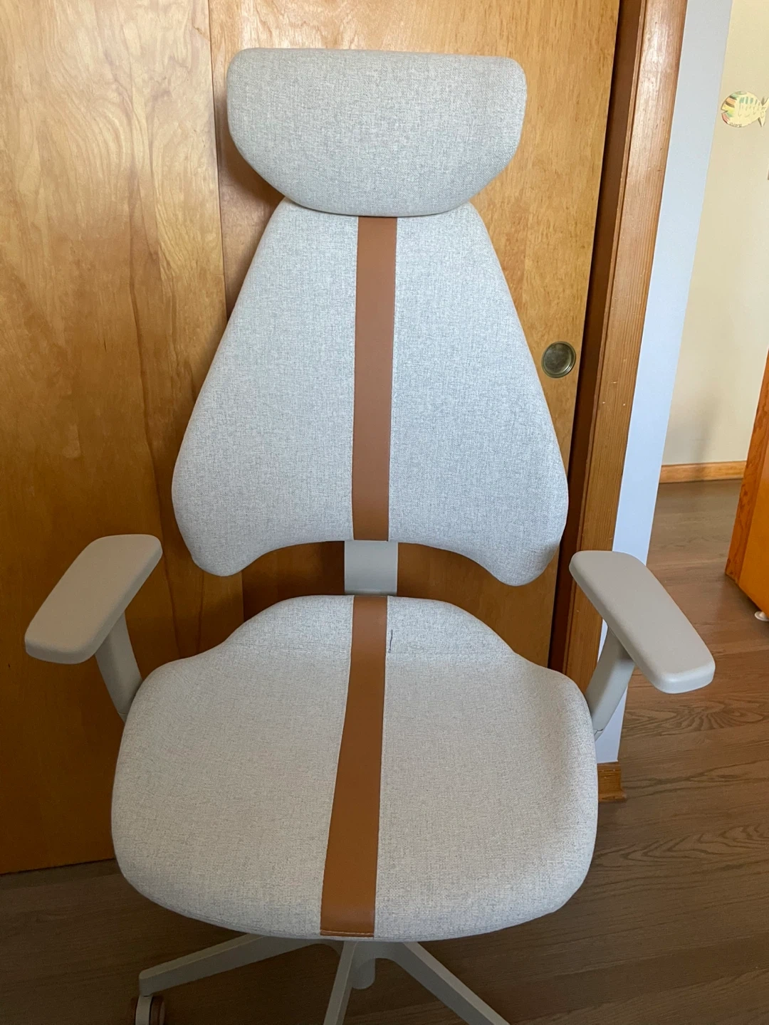 10LIKE NEW Modern ergonomic desk chair — $100 OBO (must go) Selling this super comfy, high-back desk chair with headrest. Light gray fabric with tan accent stripe, swivel base, smooth casters, armrests. Clean home, no pets/smoke. Only used once, did not fit in my space. • Retails for around $399 at IKEA • My price: $100 — priced to move • Perfect for home office, students, content creators • Pickup near Wood Dale/Bensenville area First come, first served. Cash/Zelle. If the ad is up, it’s available. 👍