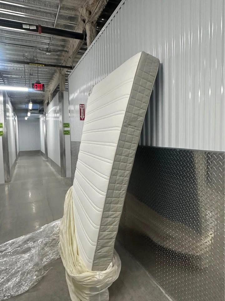 Letting go of my IKEA HASVAG mattress! I switched to a full size after moving to a new apartment so I don’t need it anymore. This mattress got me through really good sleep & I wish I could keep it; it’s that good. I’ve been storing it in a storage unit wrapped and with a mattress cover (it’s been unwrapped for photos) — no stains! Pickup in Bedstuy.