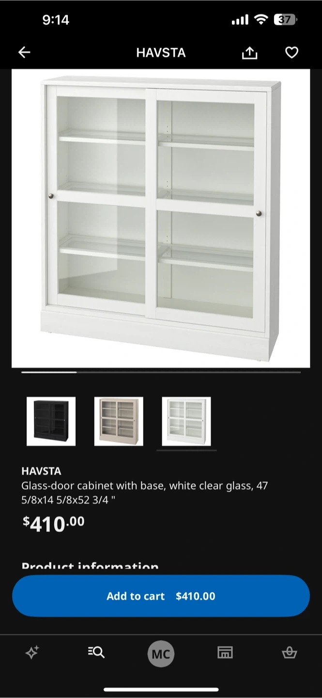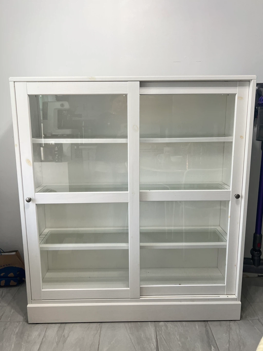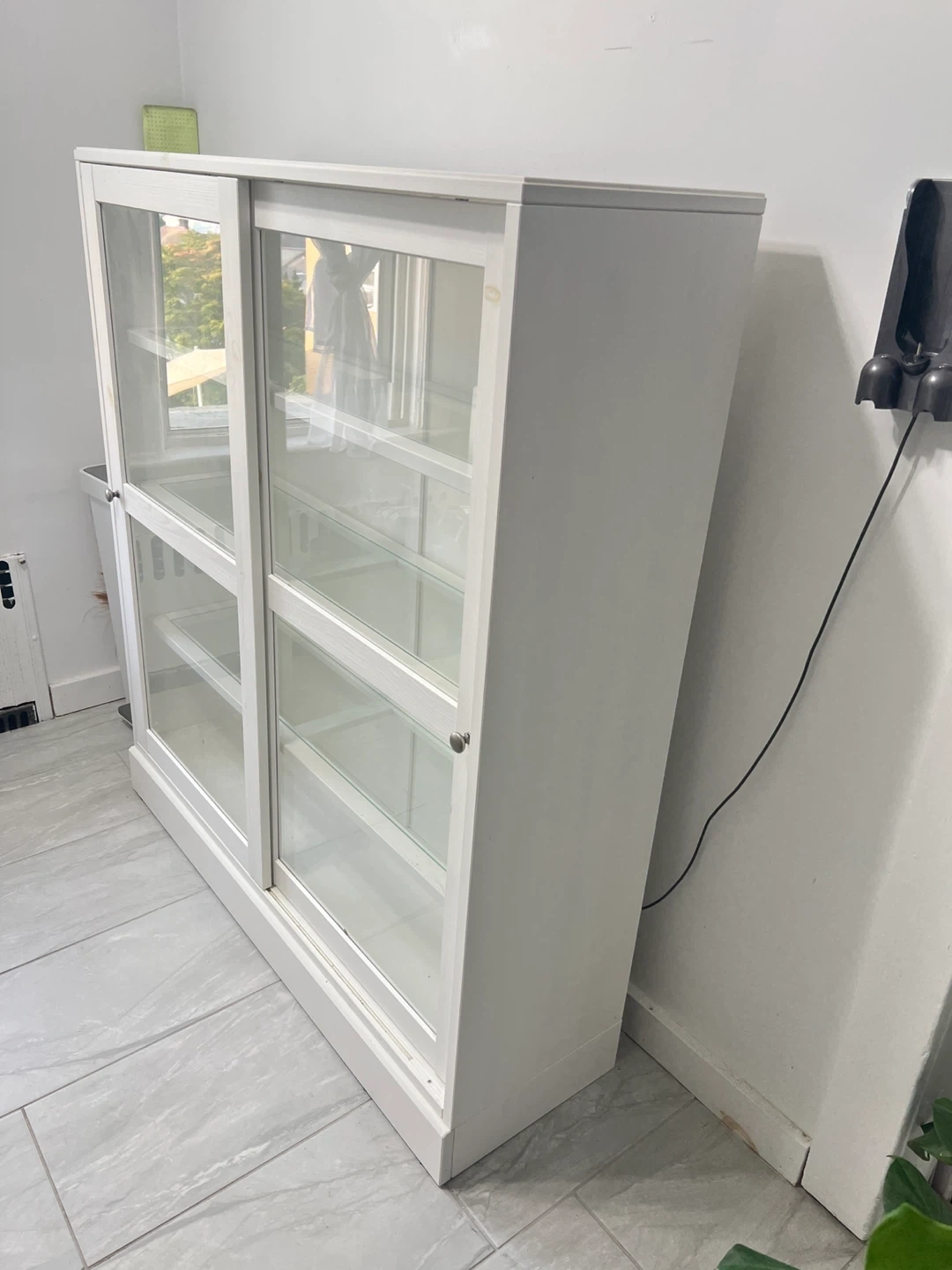 10Move out sale Price negotiable Ikea Havsta white glass-door cabinet WITH base Original price $410+tax No issue or damage - just natural wood stains, no glass crack/break Assembled Pickup from 2nd floor walk-up house in Tuckahoe can send photos/videos of item upon request