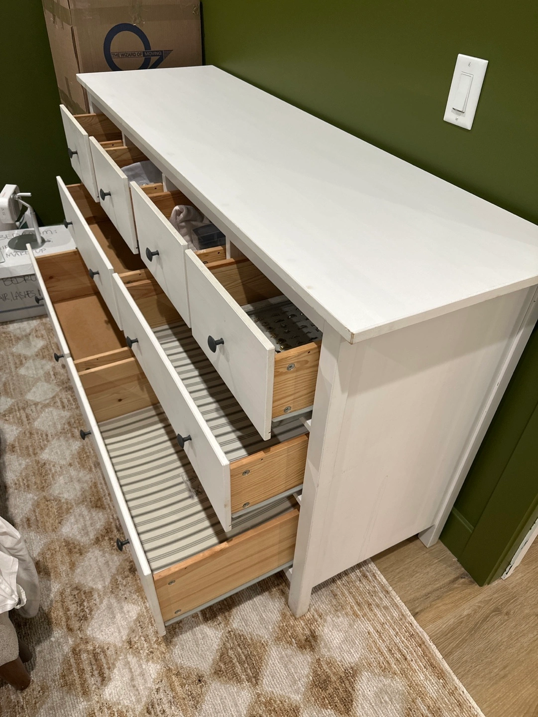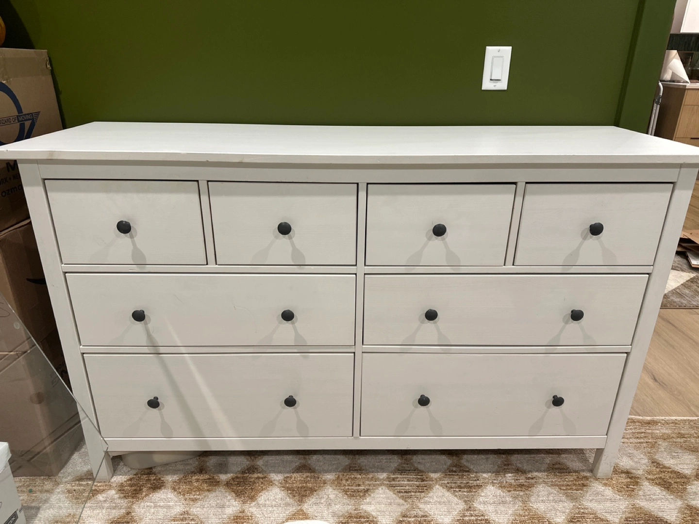 119IKEA White dresser, eight drawers, good condition. Minor wear. Drawers open and close perfectly. Simple design, great storage. HEMNES 8-drawer dresser, white stain, 63x37 3/4 "