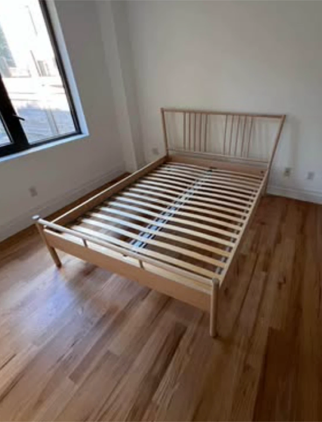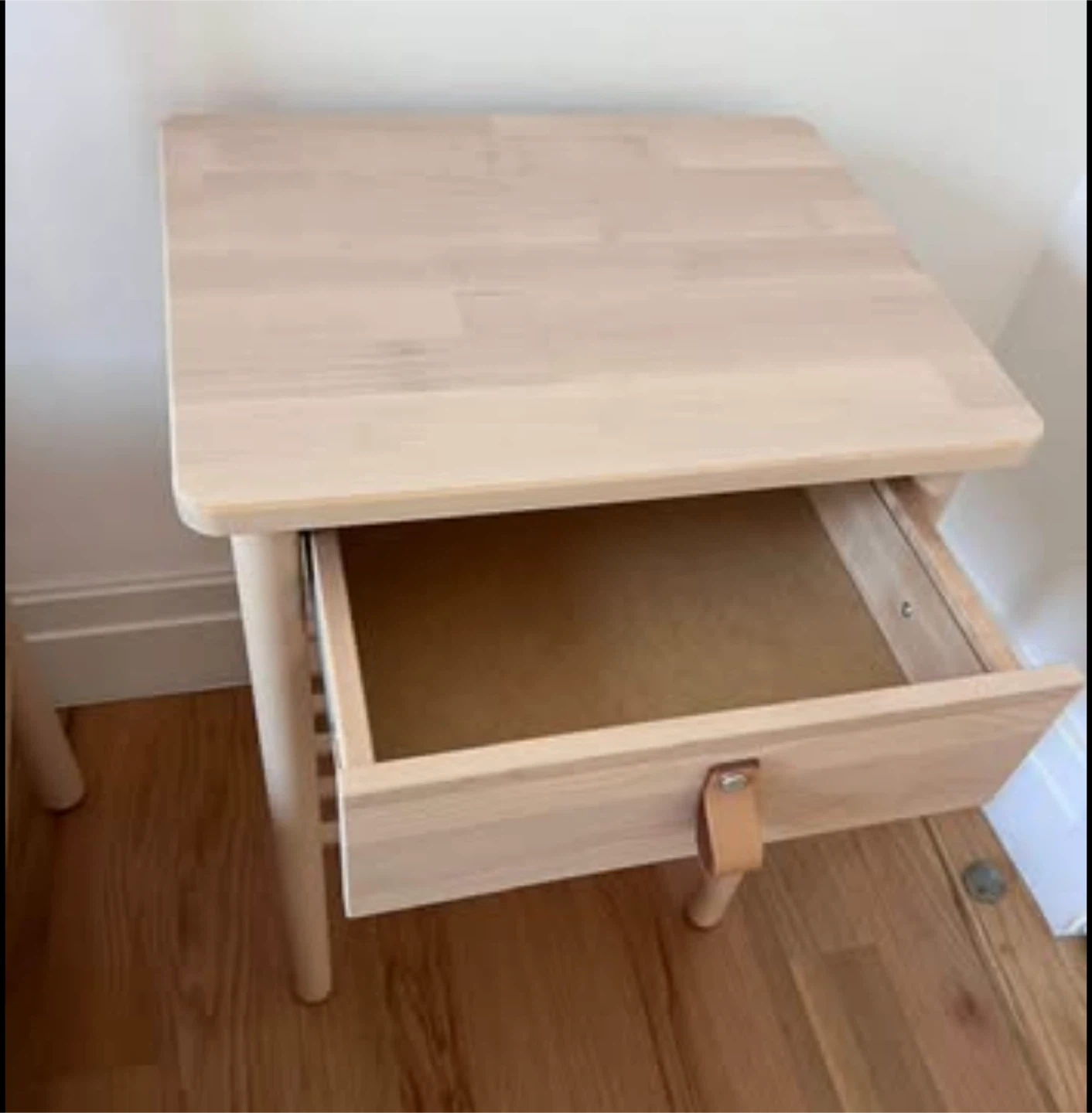 Selling a lightly used IKEA Hemnes bed frame and matching nightstand. The bed frame is a light wood color and in great condition. The nightstand has a single drawer and is also in excellent shape. Both pieces are sturdy and stylish! Perfect for a simple bedroom setup